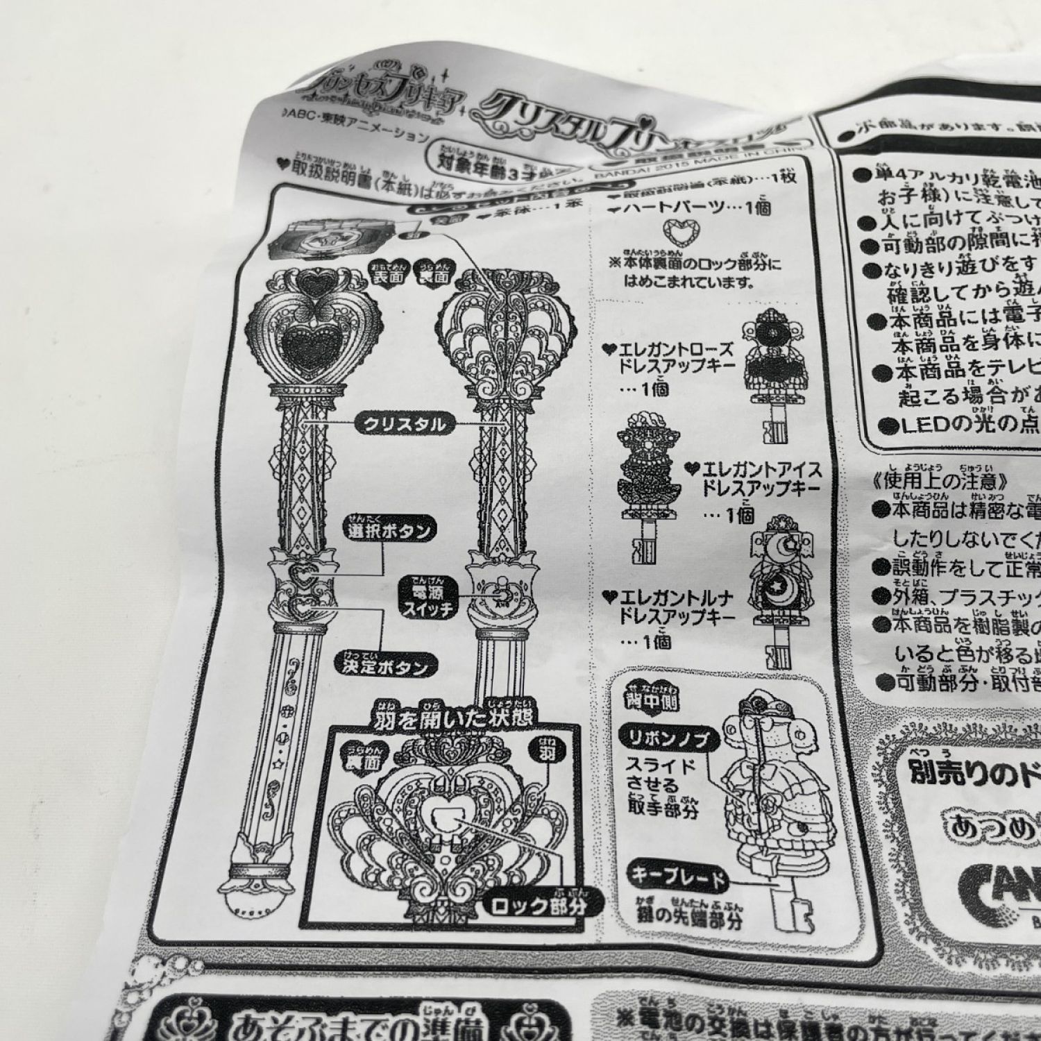 付属品のエレガントアイスドレスアップキー、エレガントルナドレスアップキーでは裏面の羽が開きますが、その他二つでは開きません。
