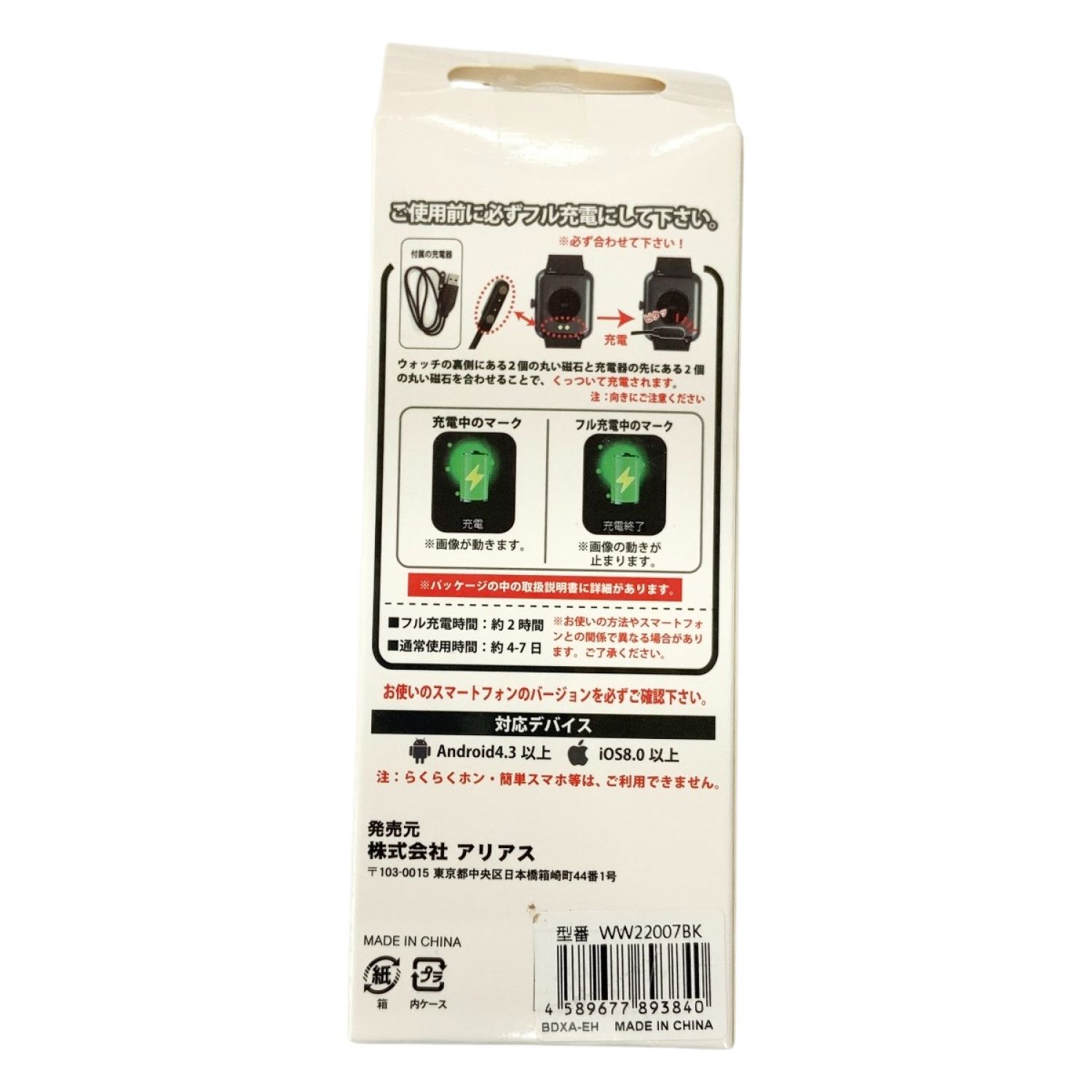 【商品名】中古 アリアス スマートウォッチ HSシリーズ スクエア Fタイプ WW22007BK ブラック Nランク