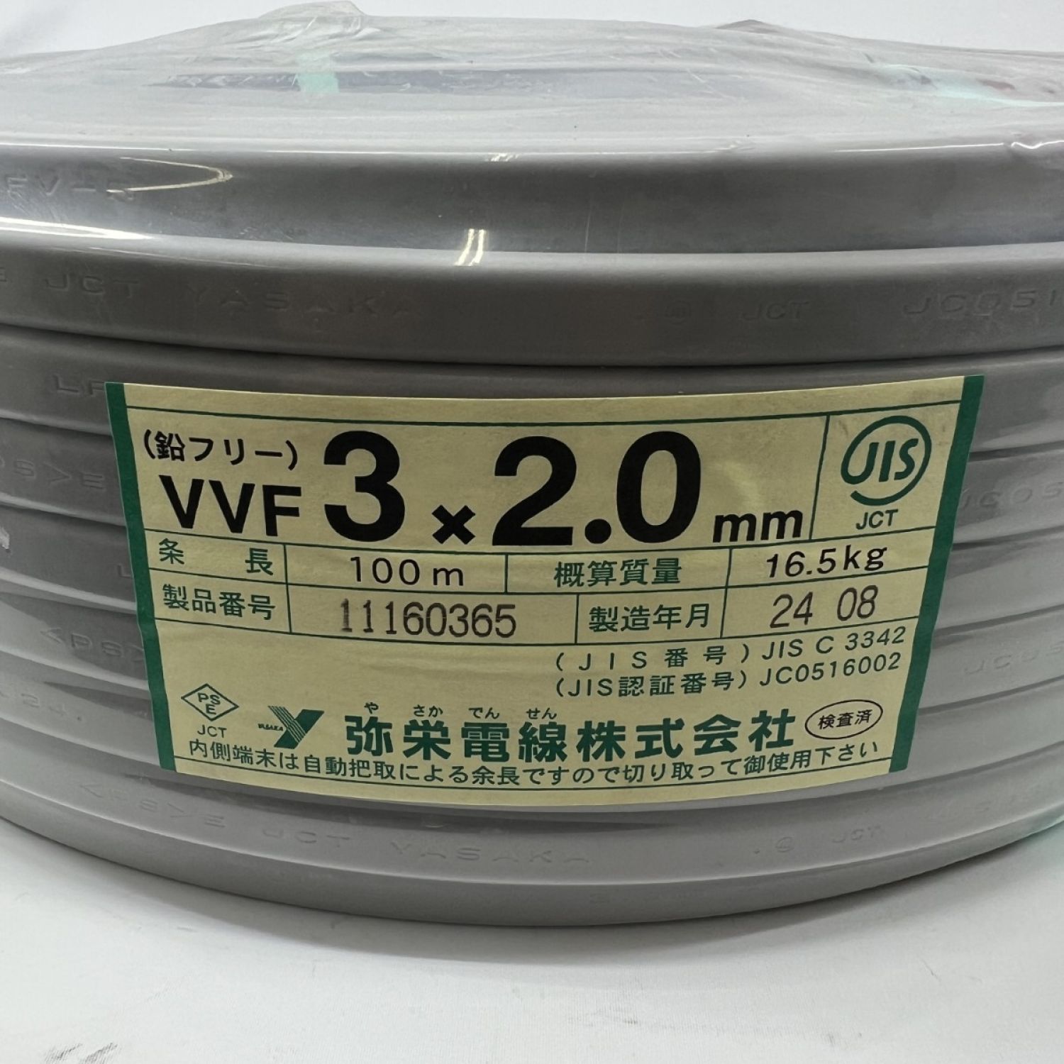 【商品名】中古 弥栄電線 電材 VVFケーブル 3芯 3× 2.0 100m 未開封品 2024年8月 Nランク