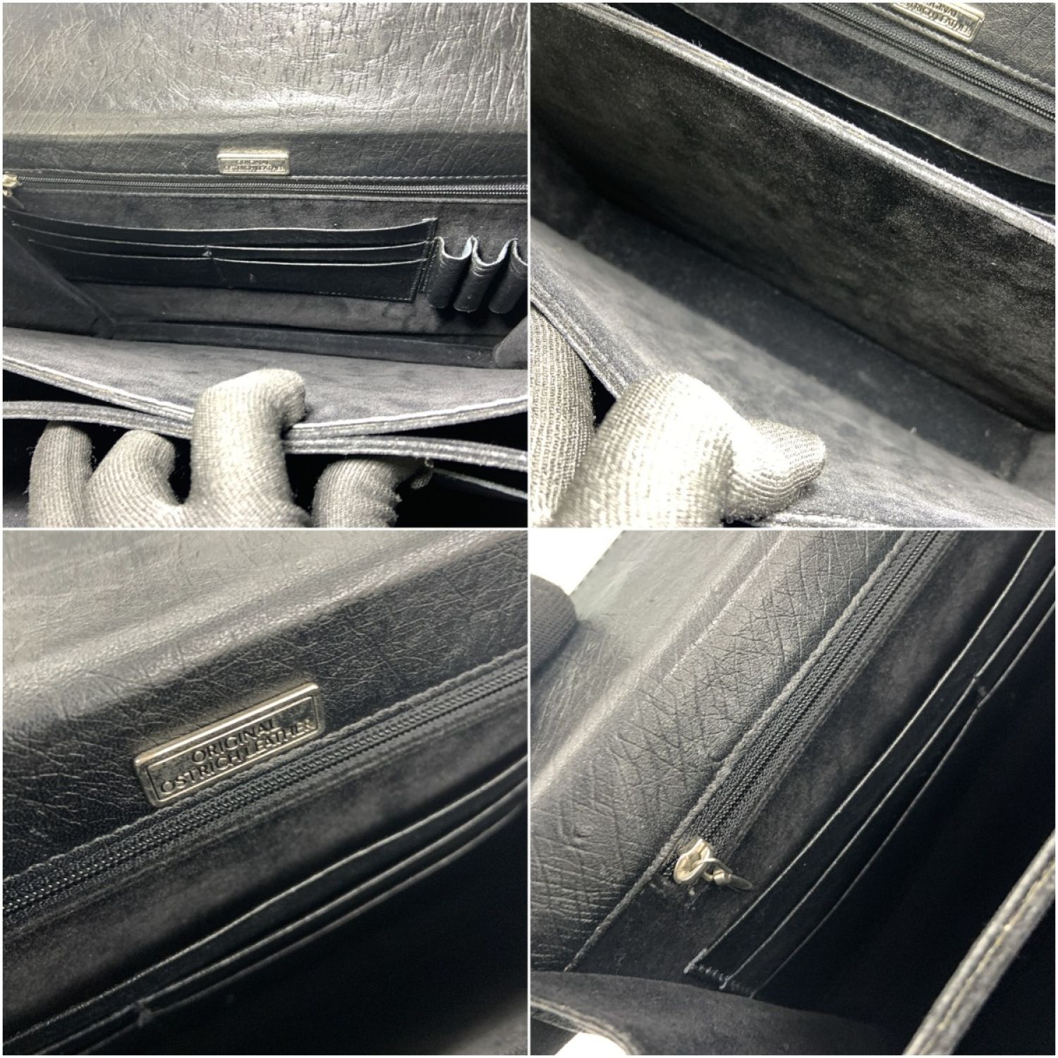 オーストリッチ ビジネスバッグ ブリーフケース ハンドバッグ ブラック