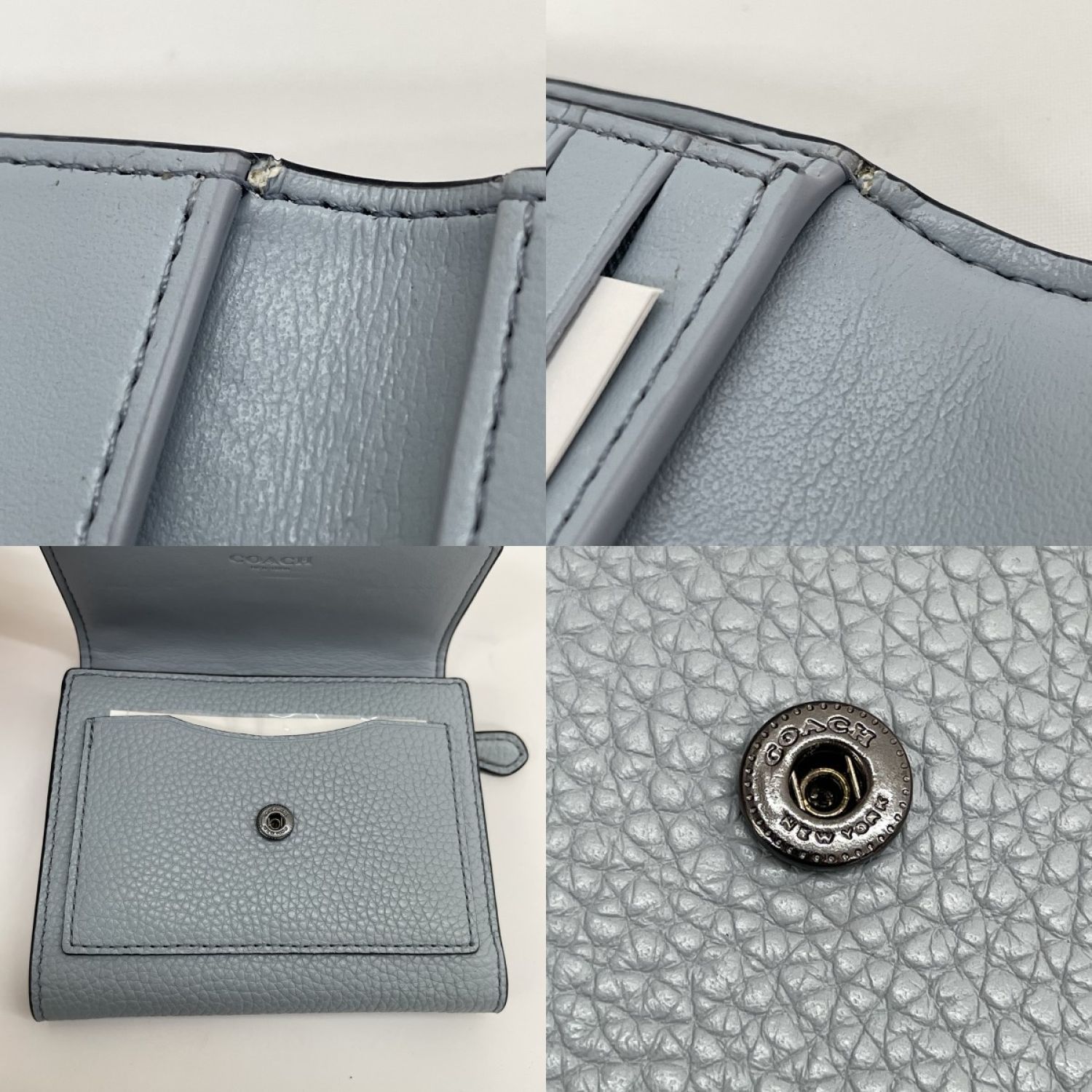 【商品名】中古 COACH コーチ 三つ折り財布 ラッカーリベット スタッズ 12171 ペールブルー Bランク