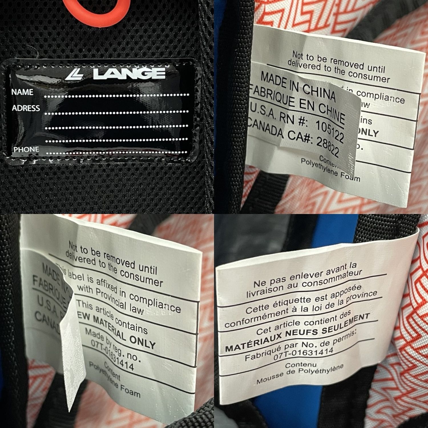 【商品名】中古 LANGE ラング レースバッグ スキーブーツバックパック LKNB102 ブルー Aランク