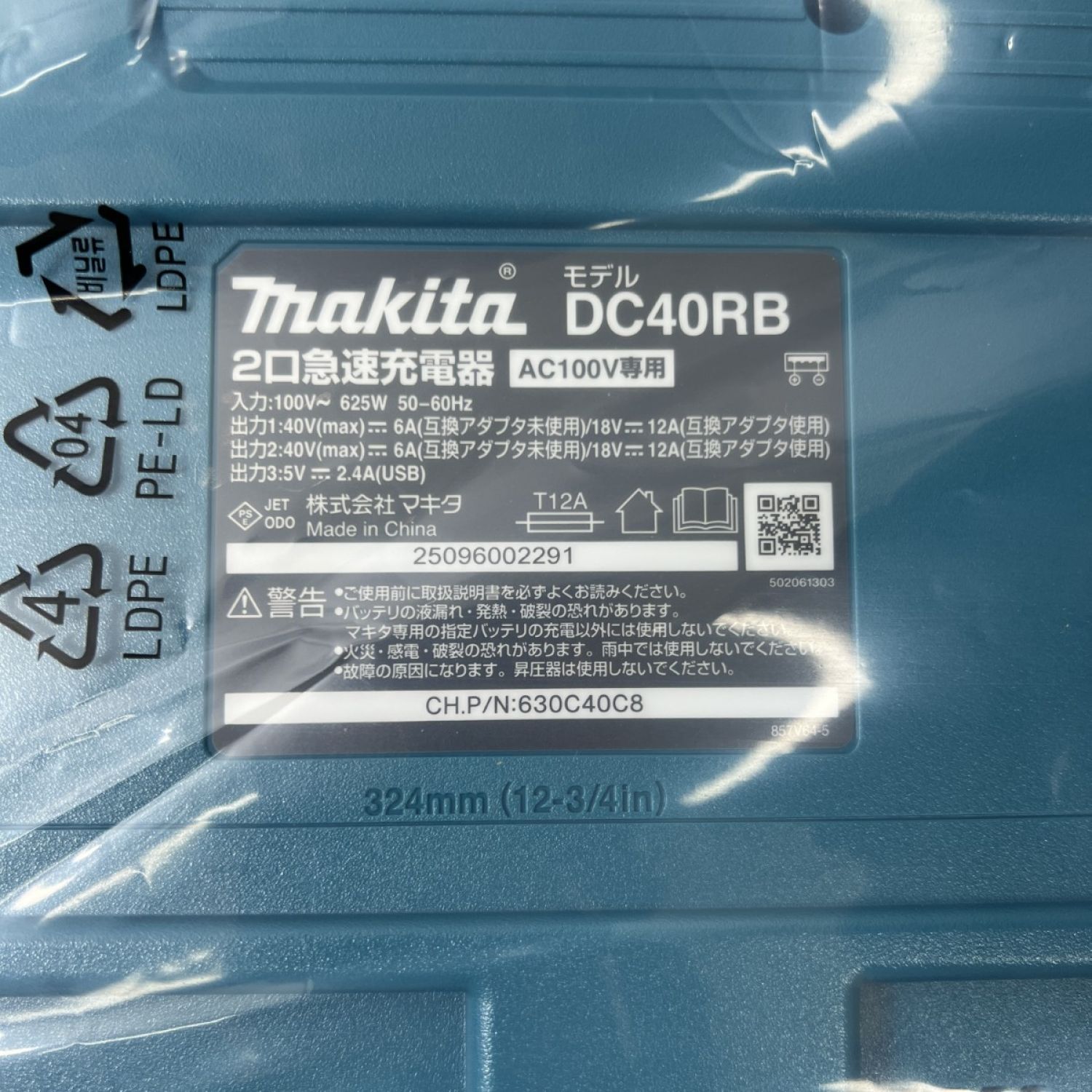 製品本体に貼付されている届出事業者名:株式会社マキタ