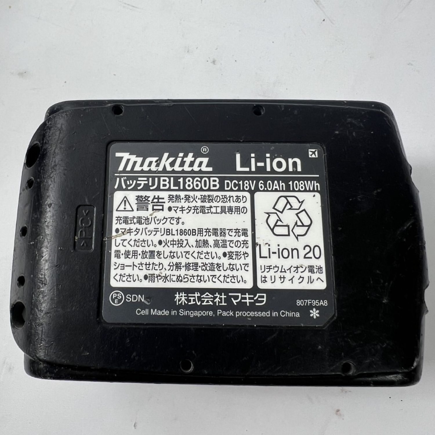製品本体に貼付されている届出事業者名:株式会社マキタ
