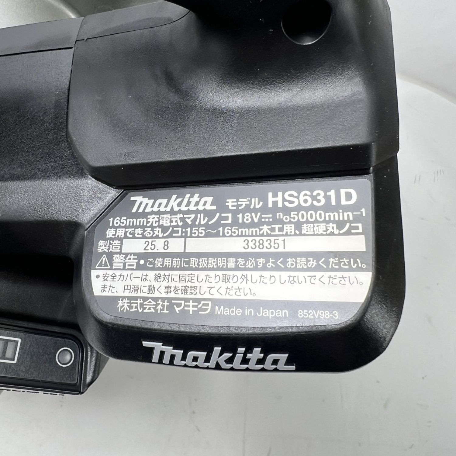 製品本体に貼付されている届出事業者名:株式会社マキタ