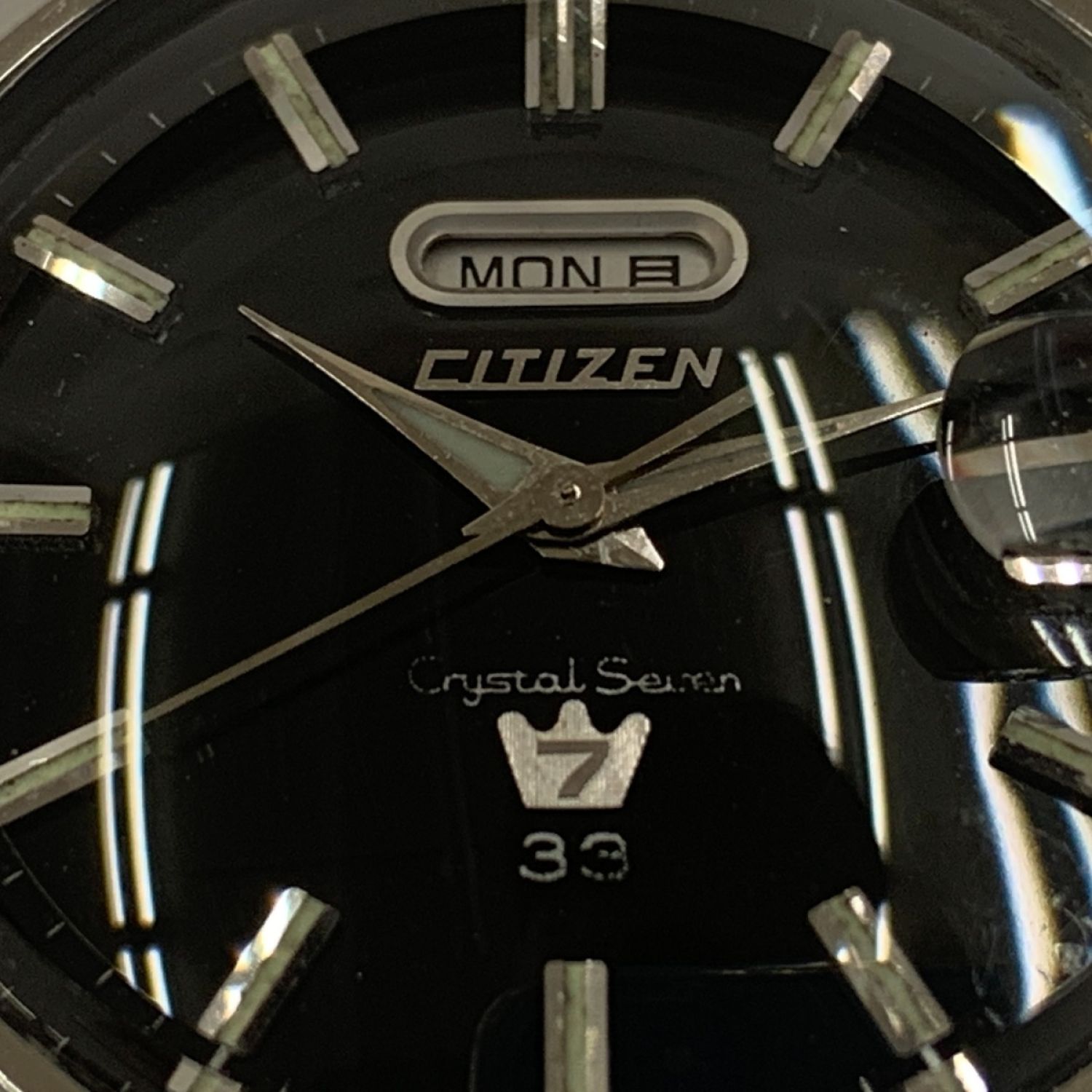 CITIZEN シチズン クリスタルセブン 3針 33石 デイデイト 自動巻 腕時計 51401-Y シルバーブラック