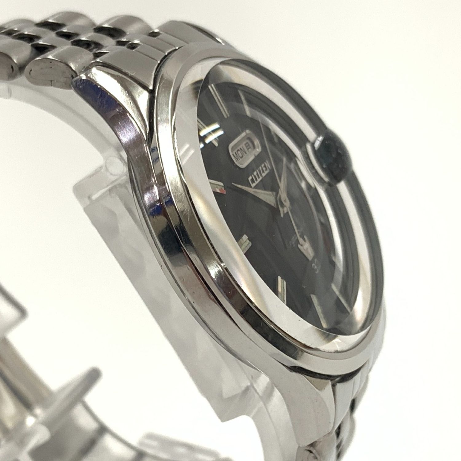 【商品名】中古 CITIZEN シチズン クリスタルセブン 3針 33石 デイデイト 自動巻 腕時計 51401-Y シルバーブラック Cランク