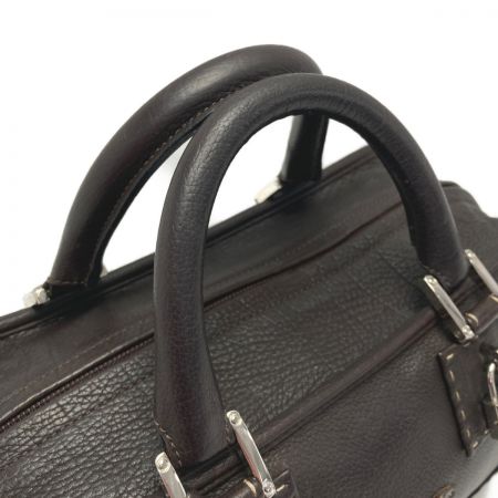 【商品名】中古 LOEWE ロエベ アマソナ28 ハンドバッグ ダークブラウン シルバー金具 ステッチ レザー 布袋有 Bランク