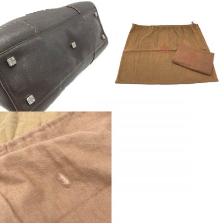 LOEWE ロエベ アマソナ28 ハンドバッグ ダークブラウン シルバー金具 ステッチ レザー 布袋有