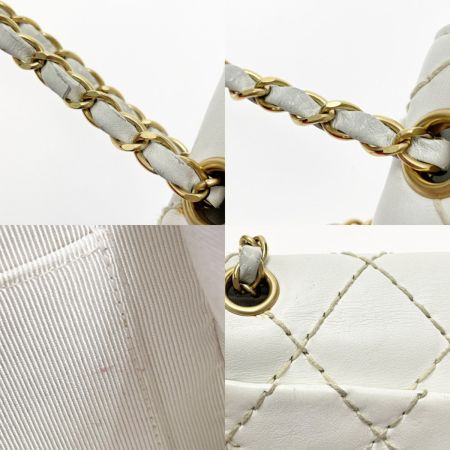 CHANEL シャネル マトラッセ25 ワイルドステッチ A14687 ホワイト チェーンショルダーバッグ ゴールド金具 ギャランティ・布袋有