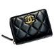 CHANEL シャネル ジップコインパース ブラック ココマーク ラムスキン レディース ゴールド金具 ギャランティ有