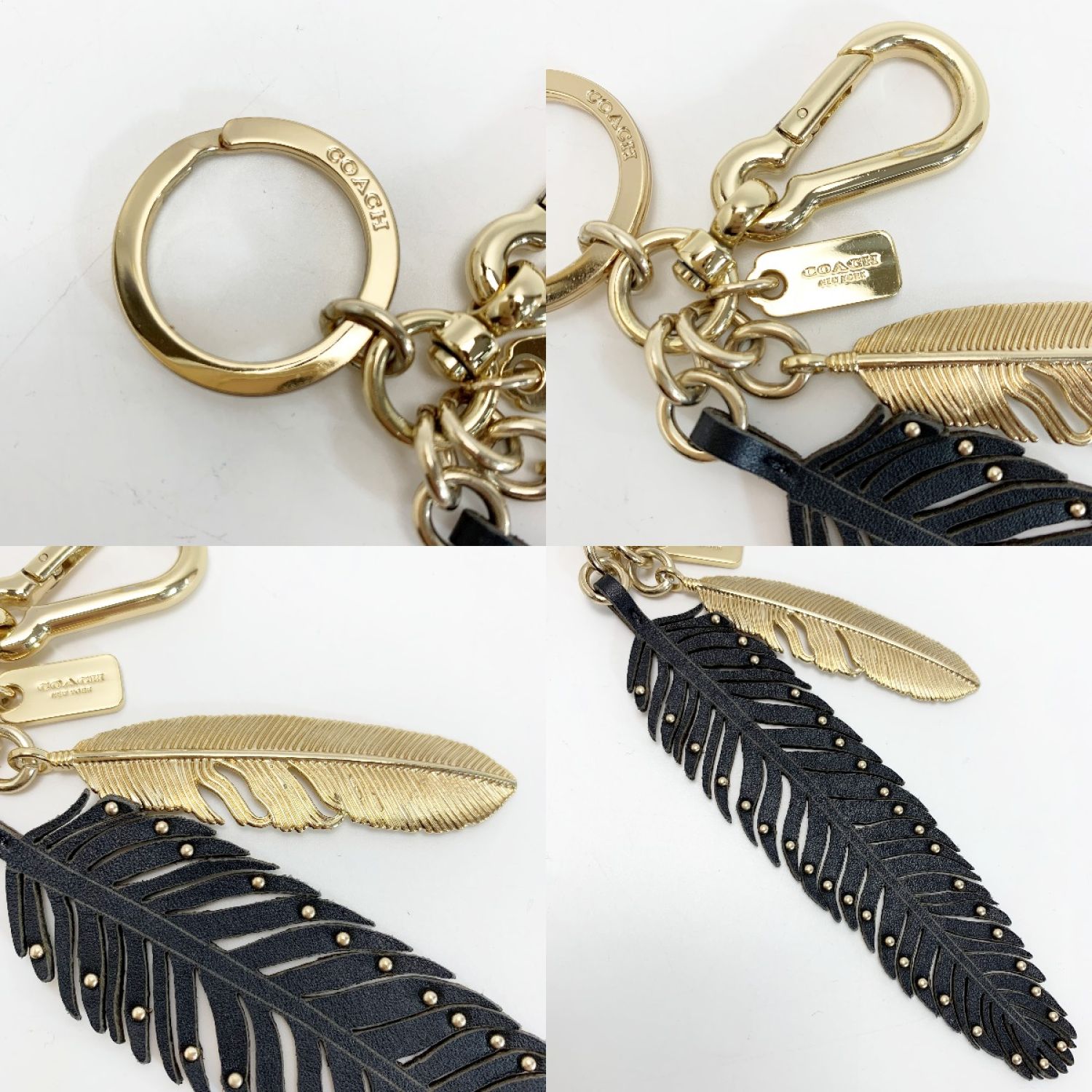 COACH コーチ キーホルダー キーリング 羽 ブラック