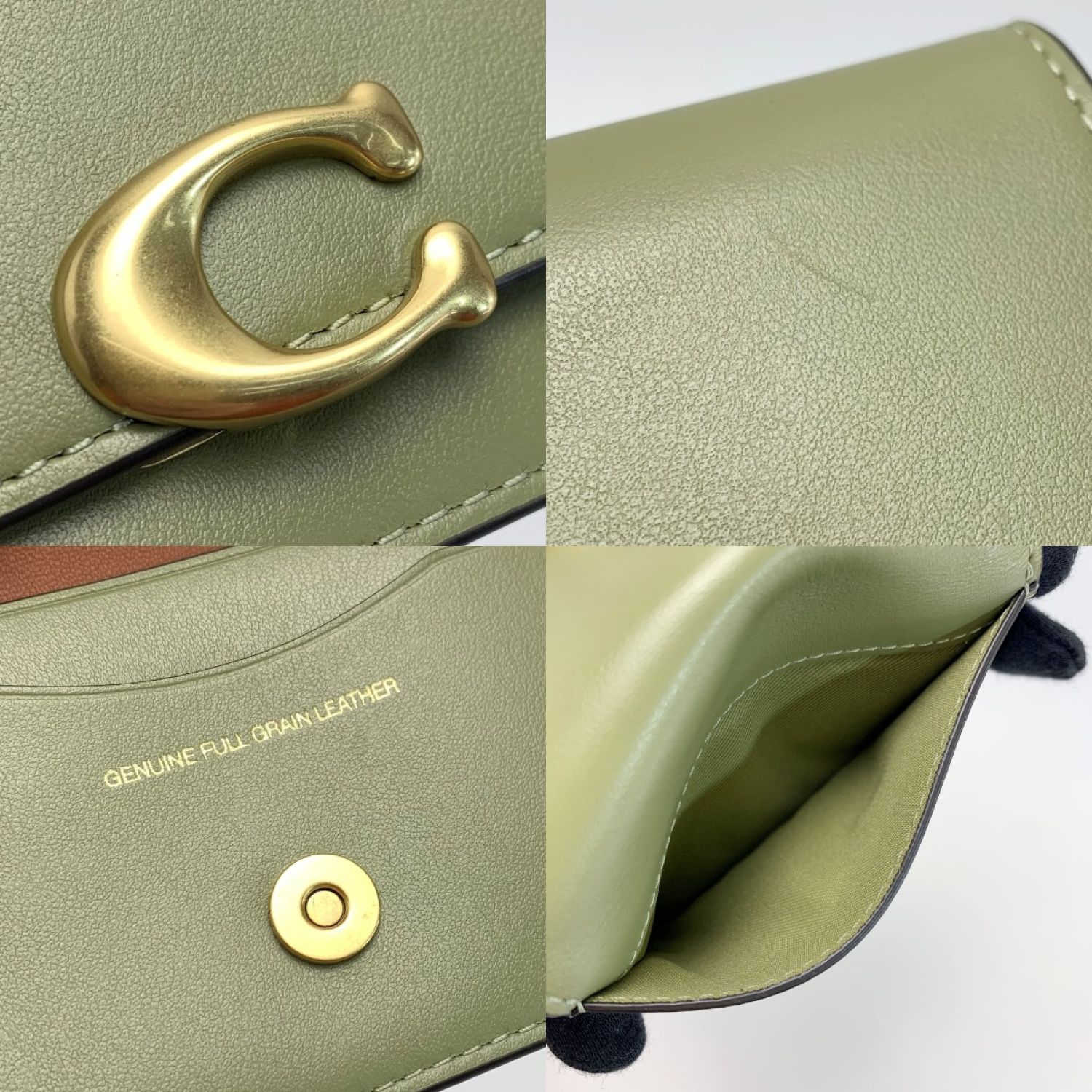 【商品名】中古 COACH コーチ 財布 ケース カードケース CH825 オリーブ レディース ゴールド金具 Bランク