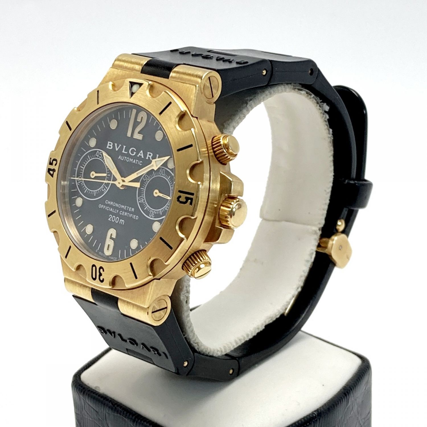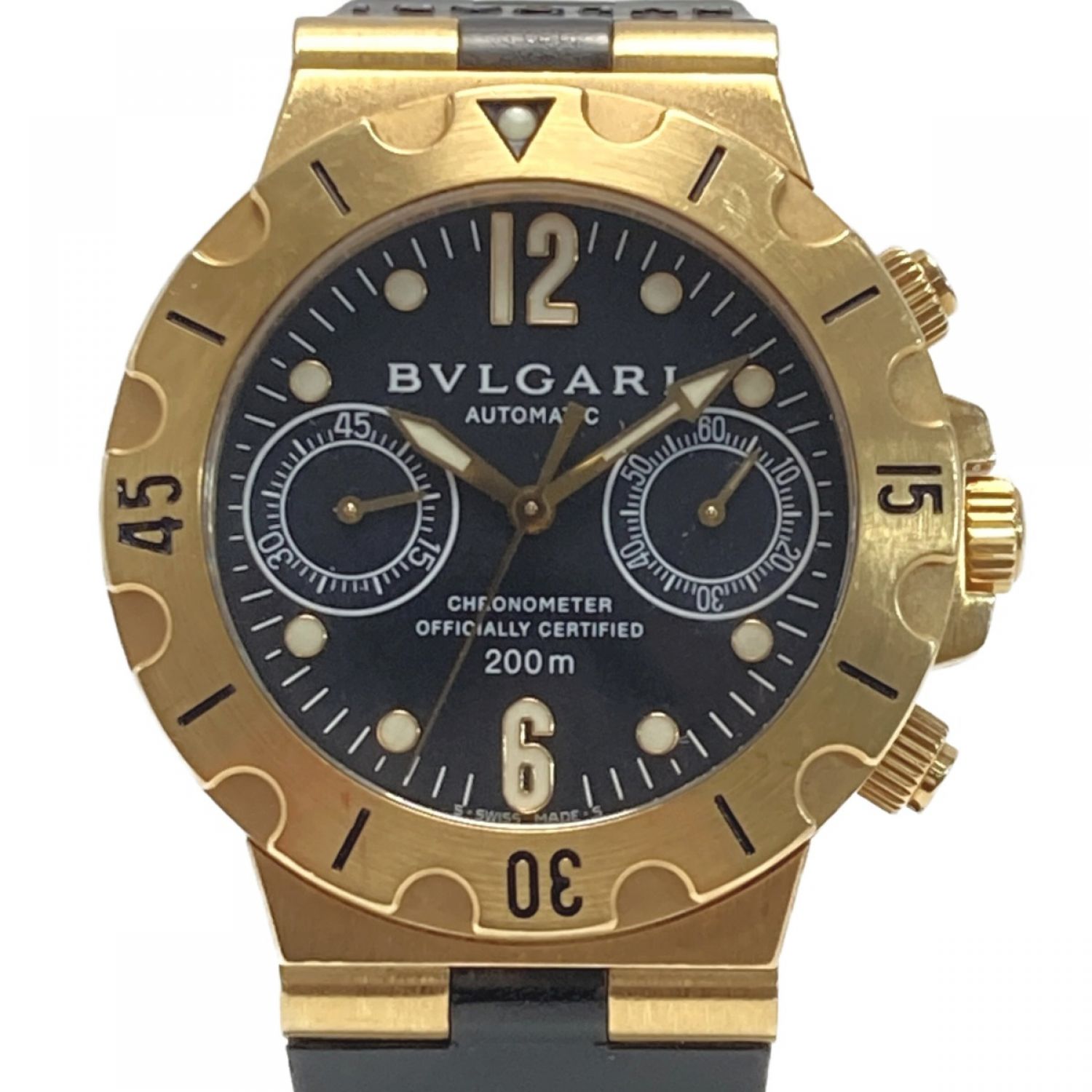 BVLGARI ブルガリ ディアゴノ スクーバ クロノグラフ K18 SC 38 G ブラック 自動巻き メンズ 腕時計 箱・取説有