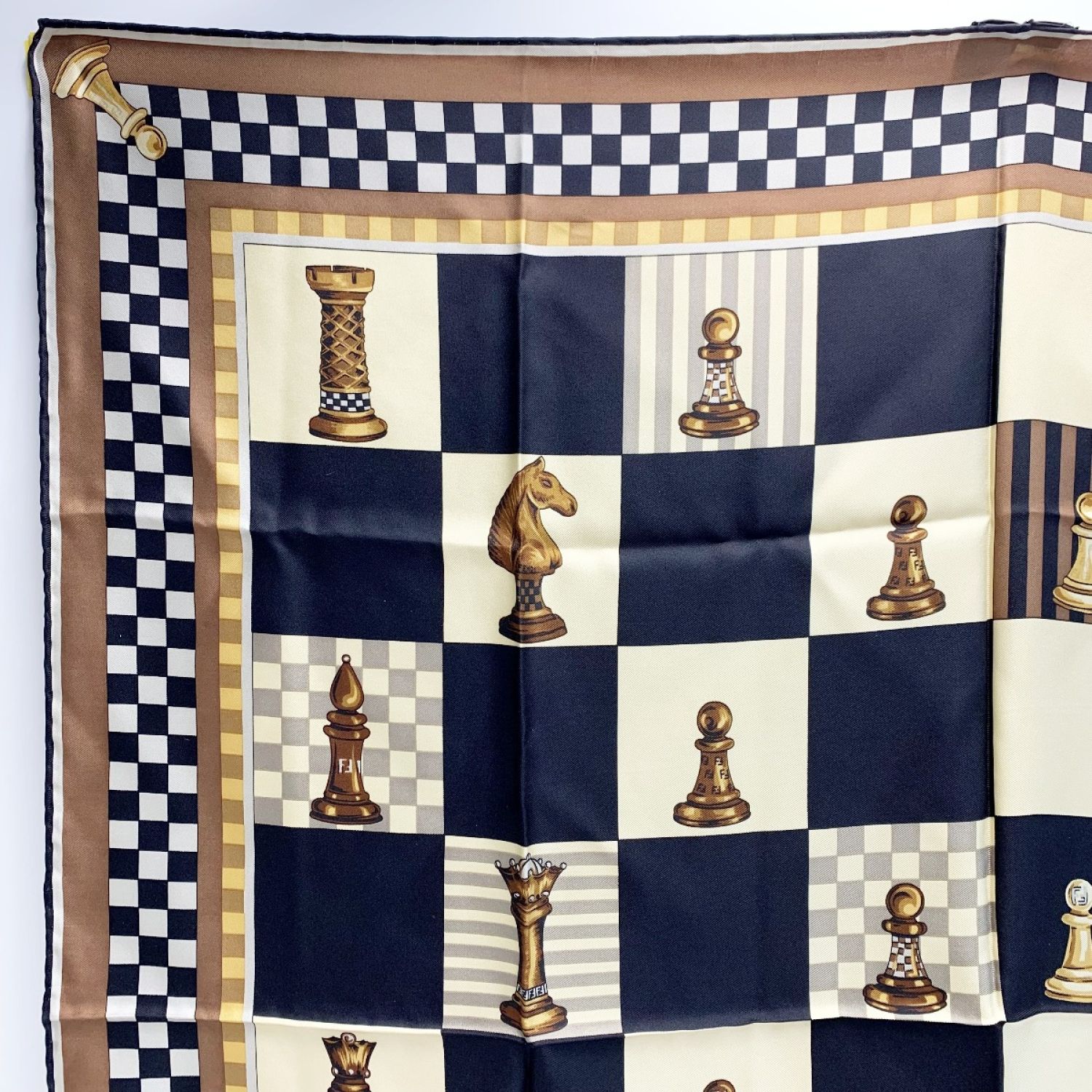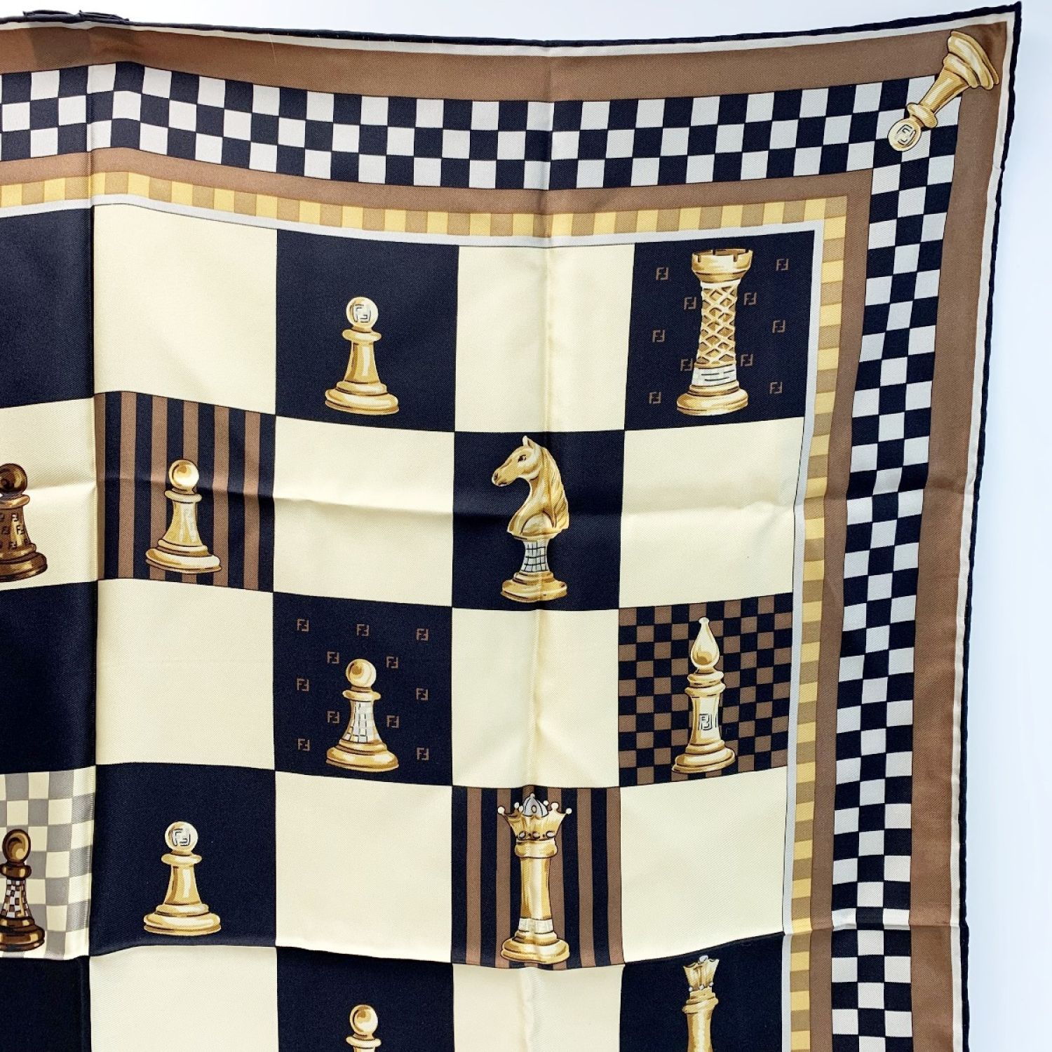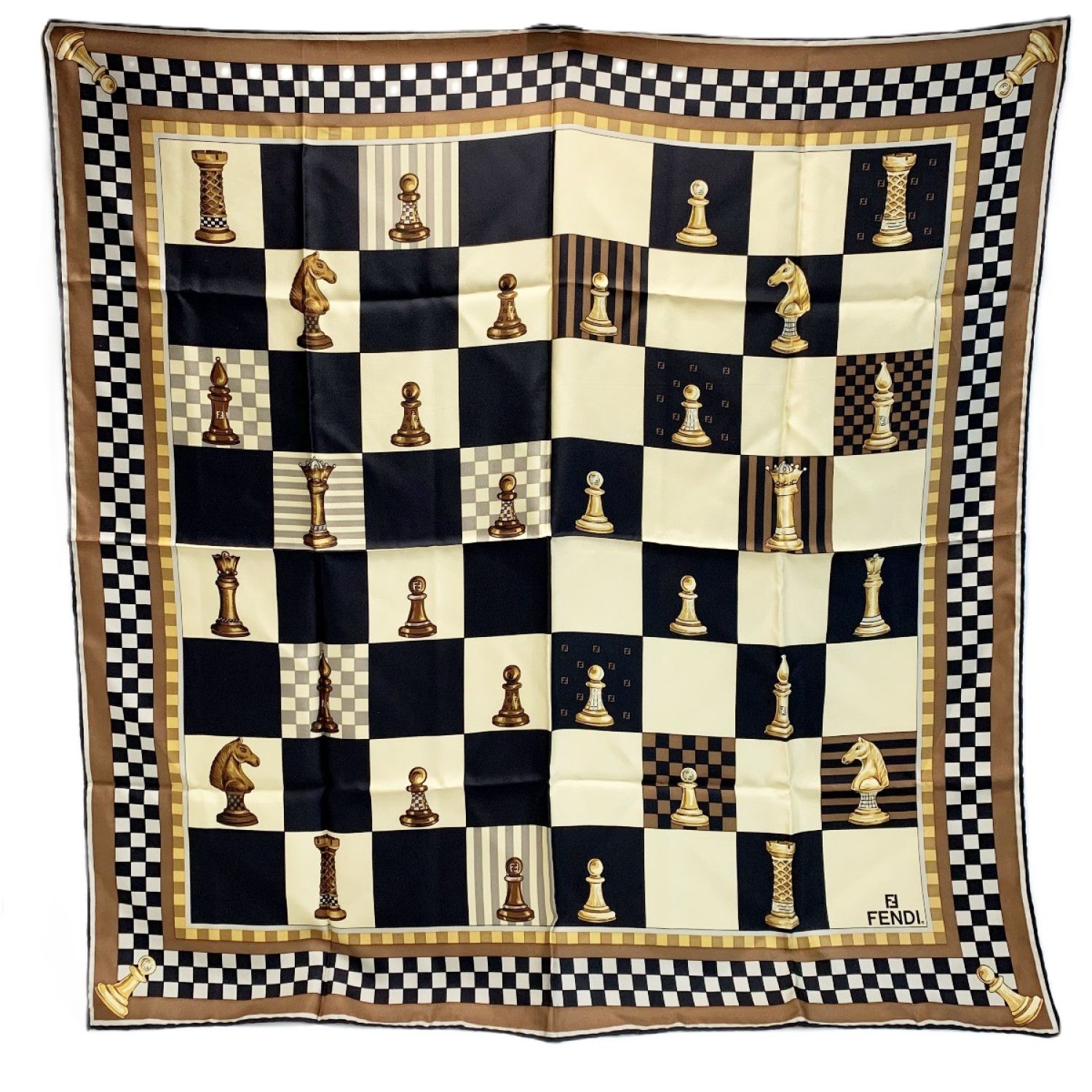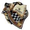FENDI フェンディ スカーフ チェス ブラウン シルク100%