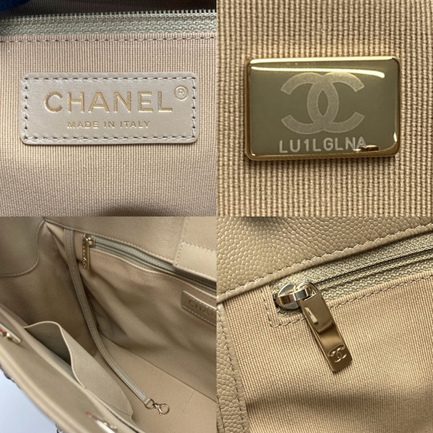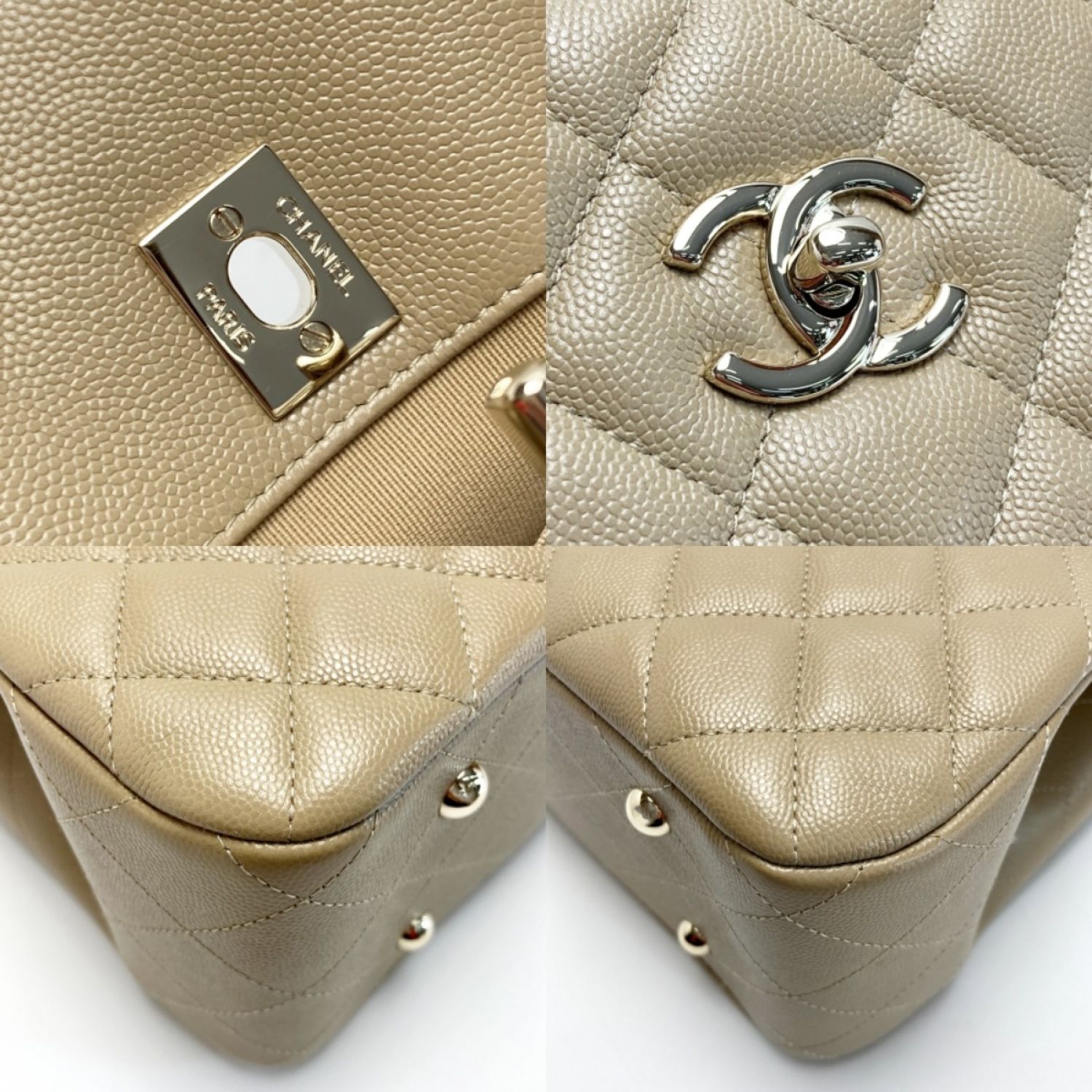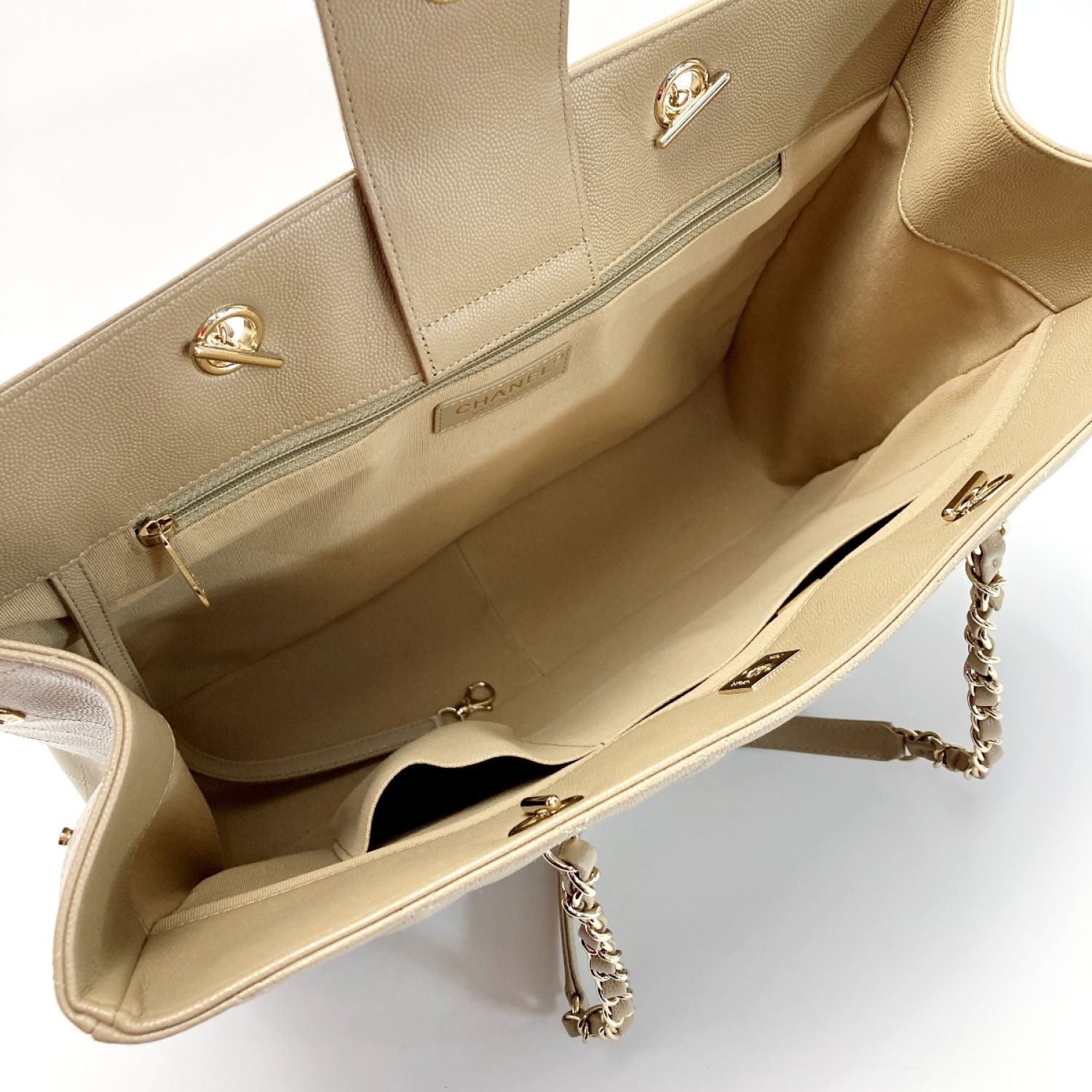 CHANEL シャネル ココマーク マトラッセ ラージ チェーントート A91046 ベージュ キャビアスキン ワンショルダー