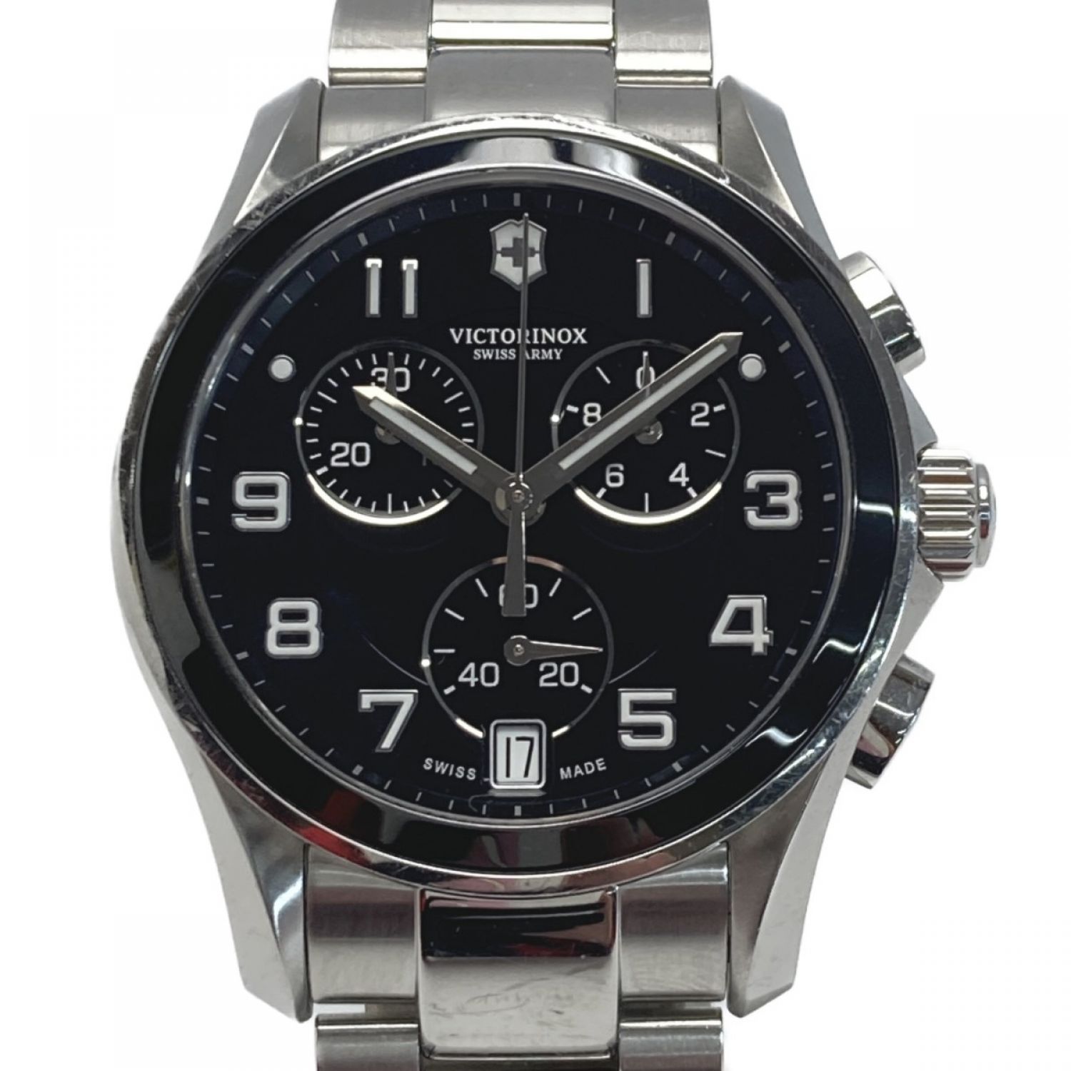 【商品名】中古 VICTORINOX ビクトリノックス クロノクラッシク 241544 ブラック クォーツ メンズ 腕時計 箱有 Cランク