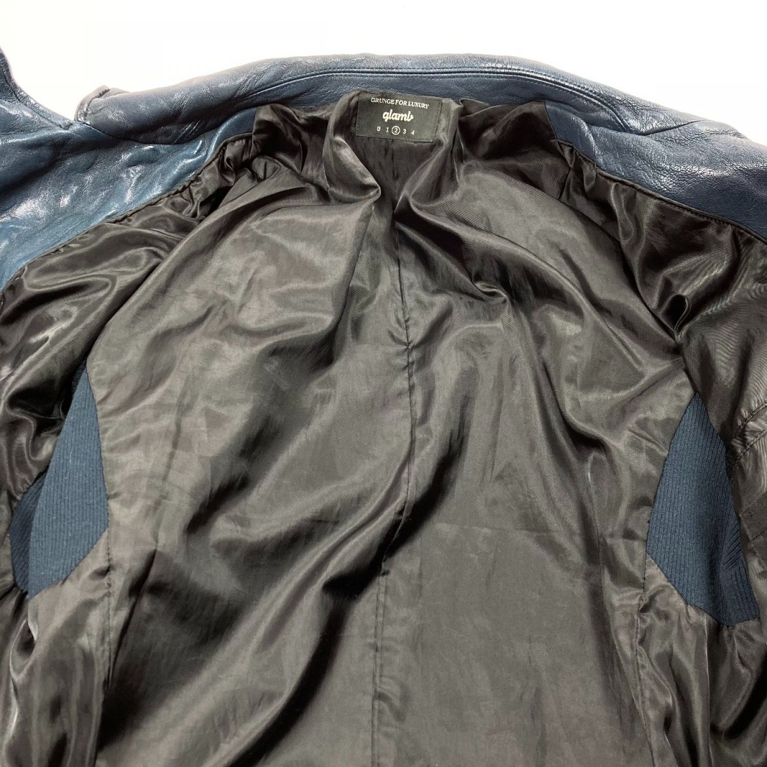 【商品名】中古 glamb グラム レザージャケット 羊革 GB0418 ネイビー サイズ 2 メンズ Bランク