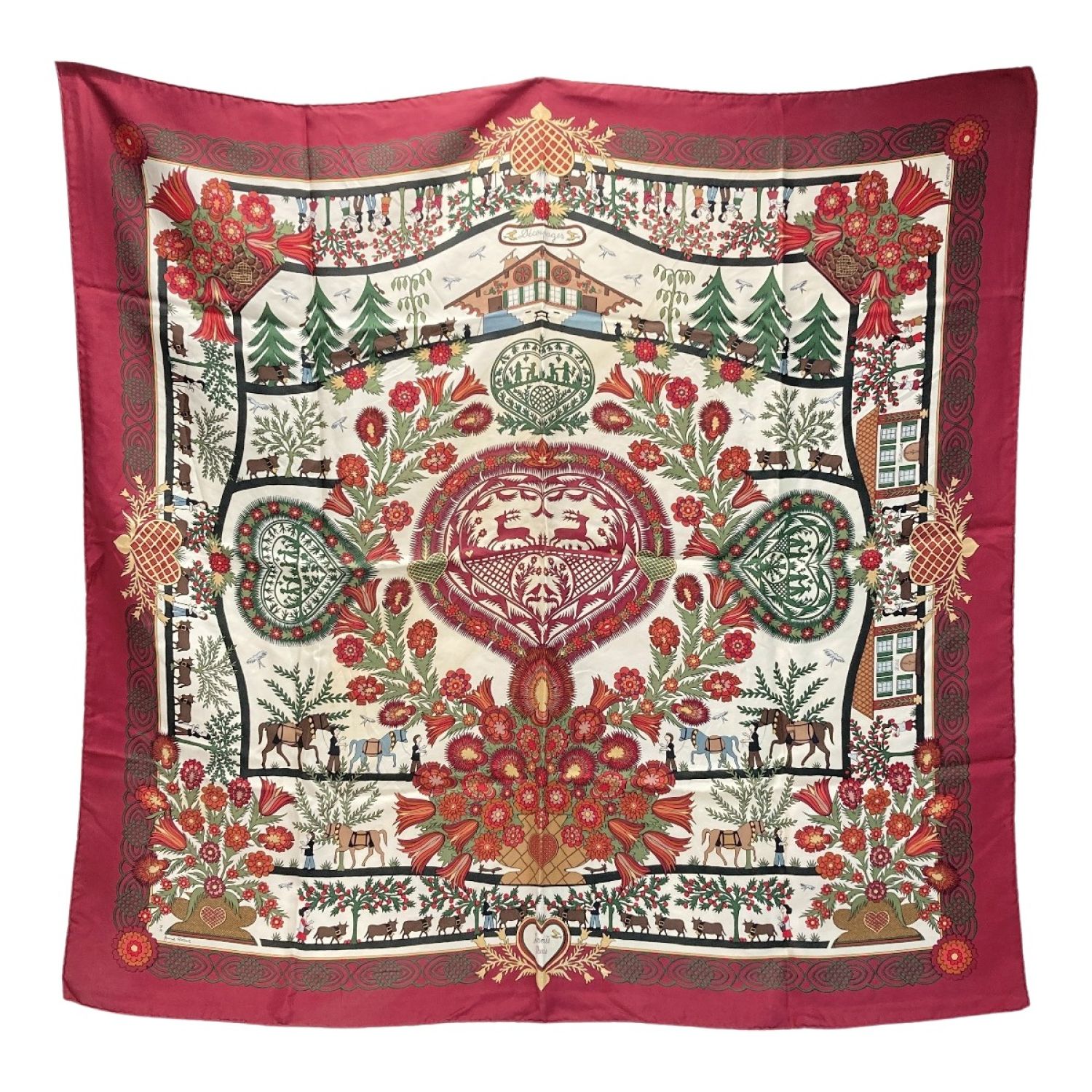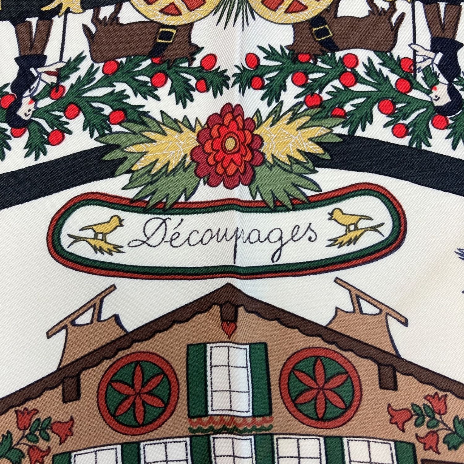 HERMES エルメス カレ90 Decoupages 切り絵 シルクスカーフ ワインレッド シルク100%