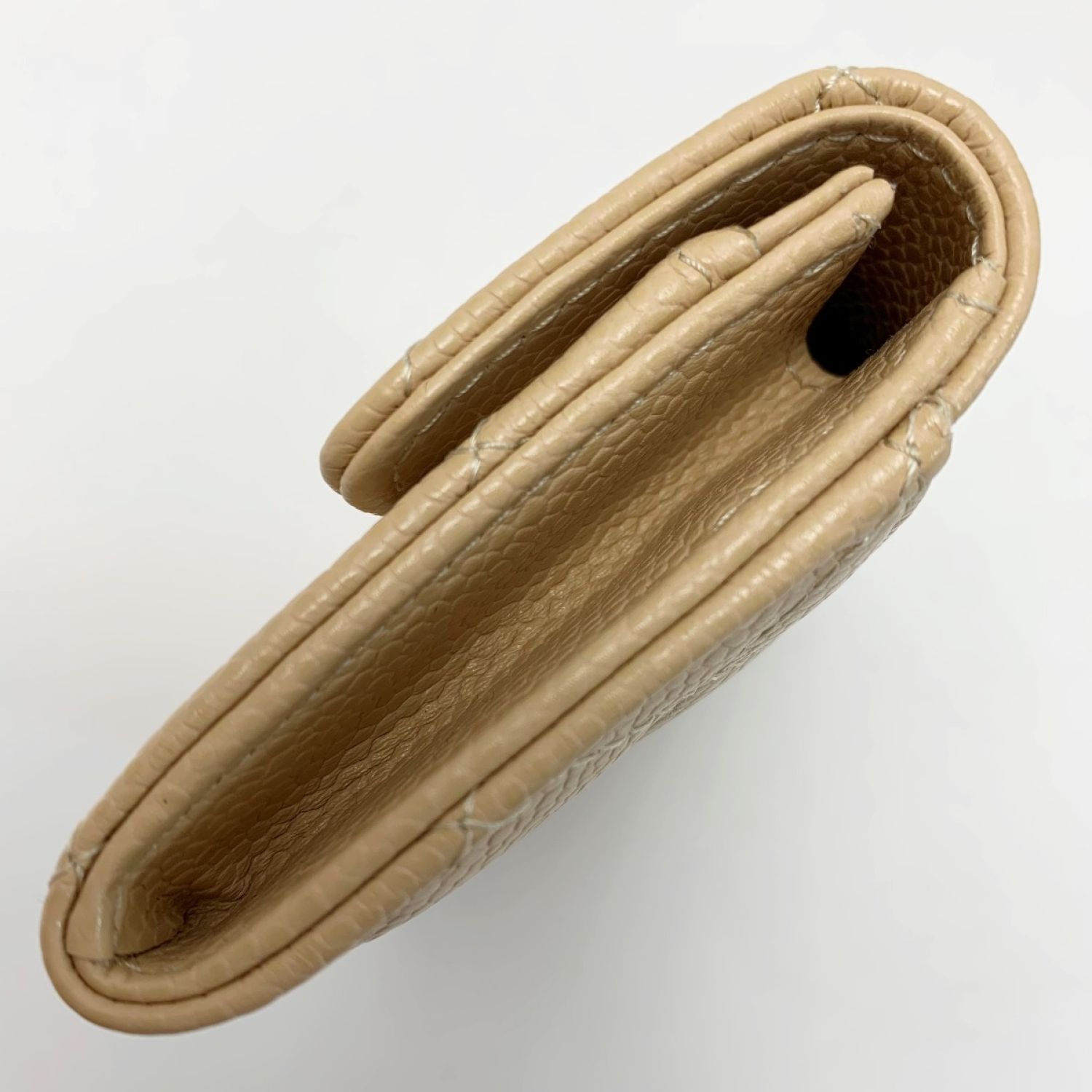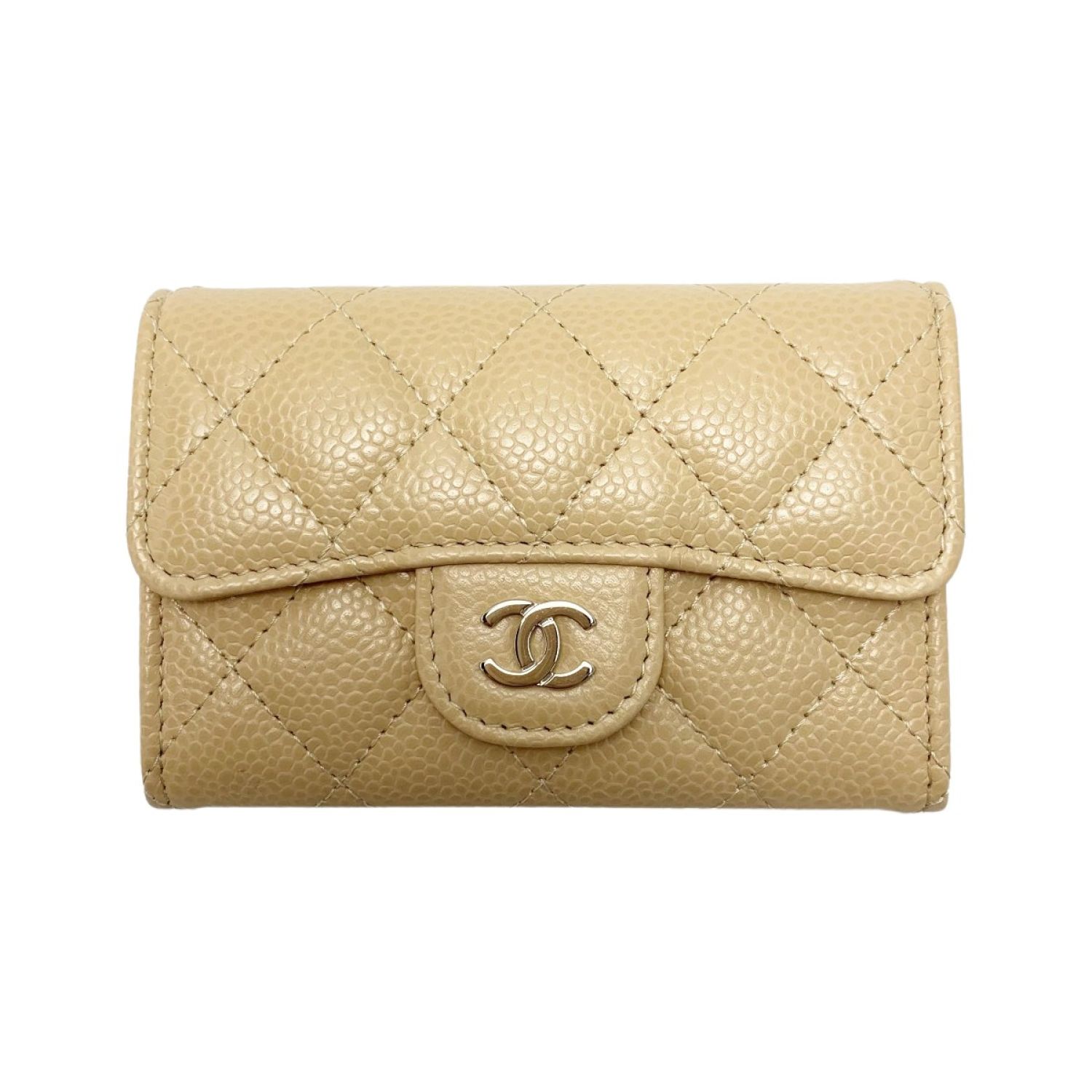 CHANEL シャネル カードケース ココマーク キャビアスキン ベージュ シルバー金具 レディース
