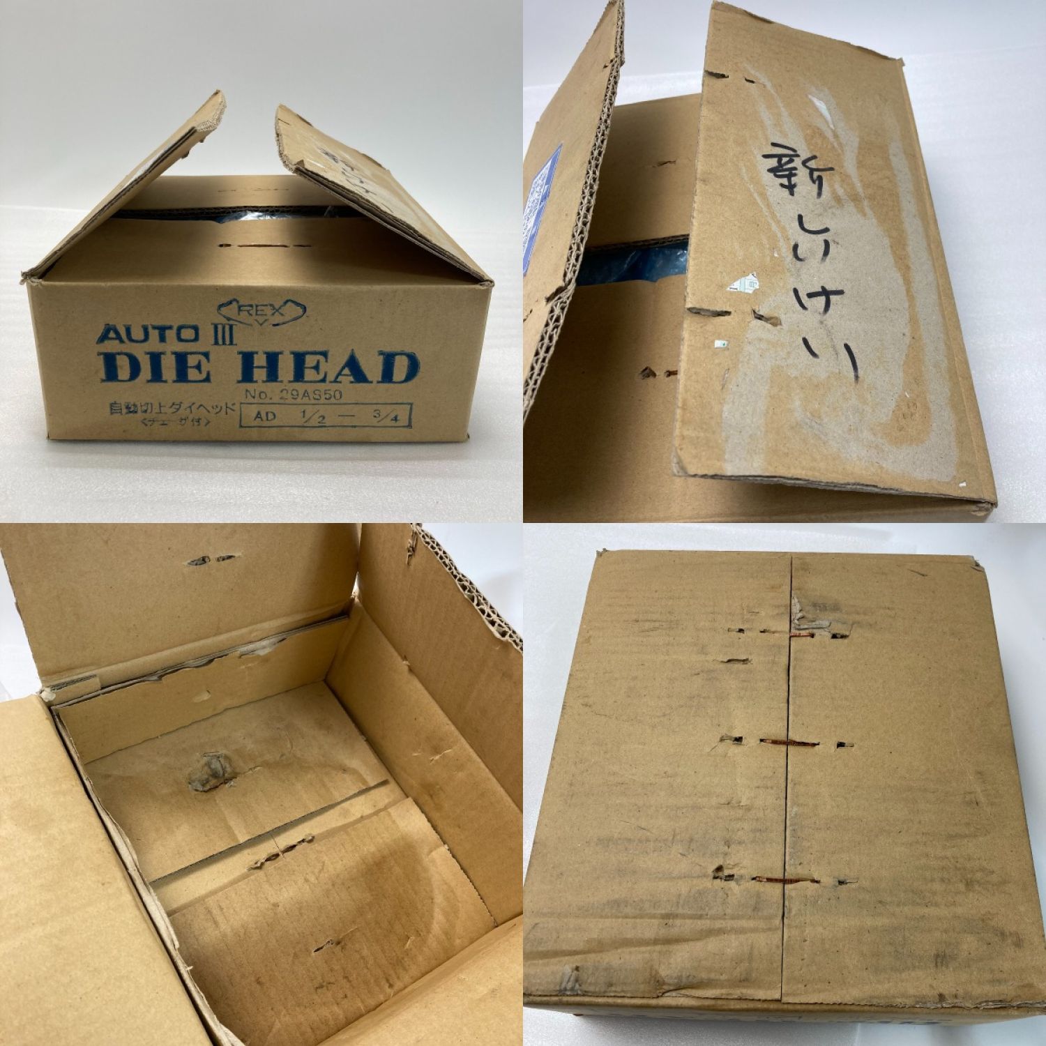 外箱段ボールにスレ傷、ヨゴレ、へこみ、油染み。マジックでの書き込み等があります。