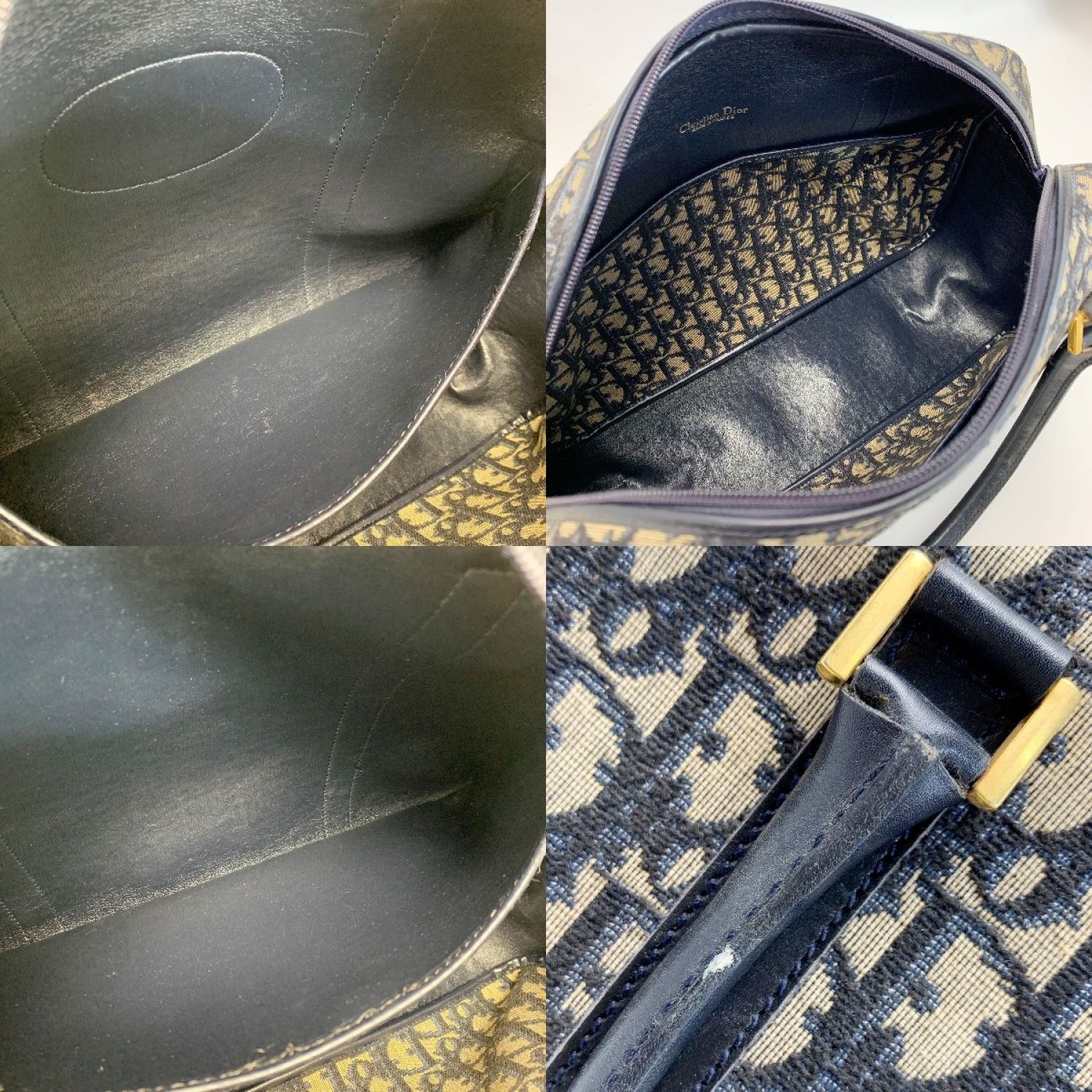 Christian Dior クリスチャンディオール トロッター ロゴ キャンバス ネイビー ハンドバッグ レディース ゴールド金具