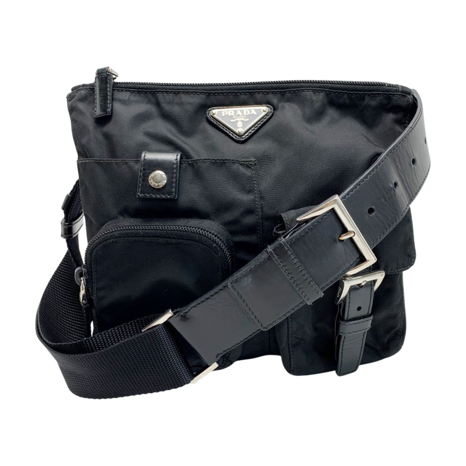 PRADA プラダ ウエストバッグ 角ロゴプレート ブラック ナイロン