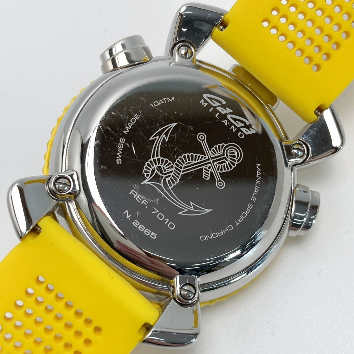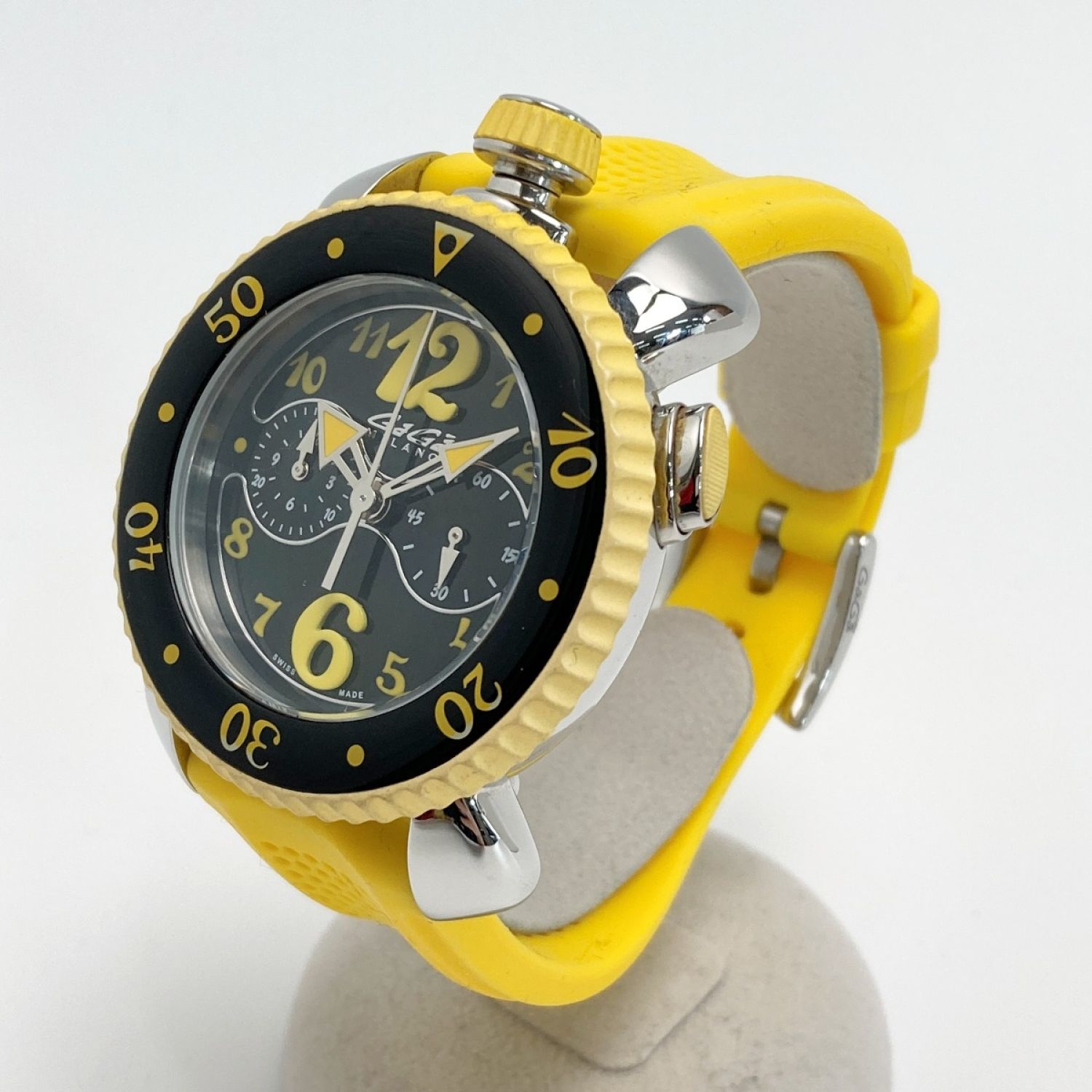 【商品名】中古 GAGA MILANO ガガミラノ クロノスポーツ 45mm 7010 ブラック×イエロー クォーツ メンズ 腕時計 箱有 Chrono Sport Bランク