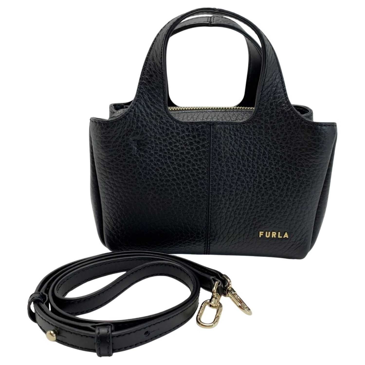 【商品名】中古 FURLA フルラ レザー WB00614 ブラック 2WAYバッグ ストラップ・袋付 Bランク