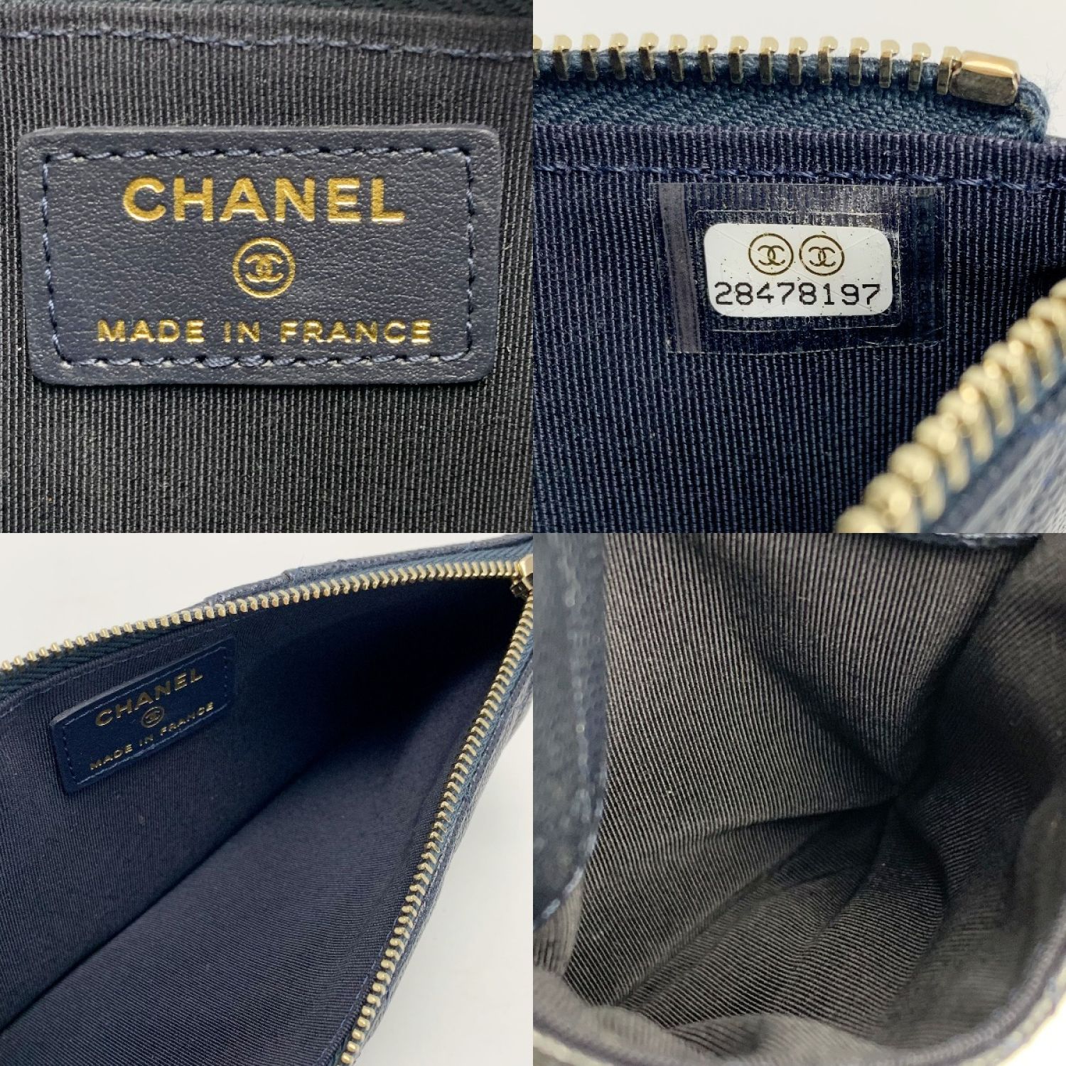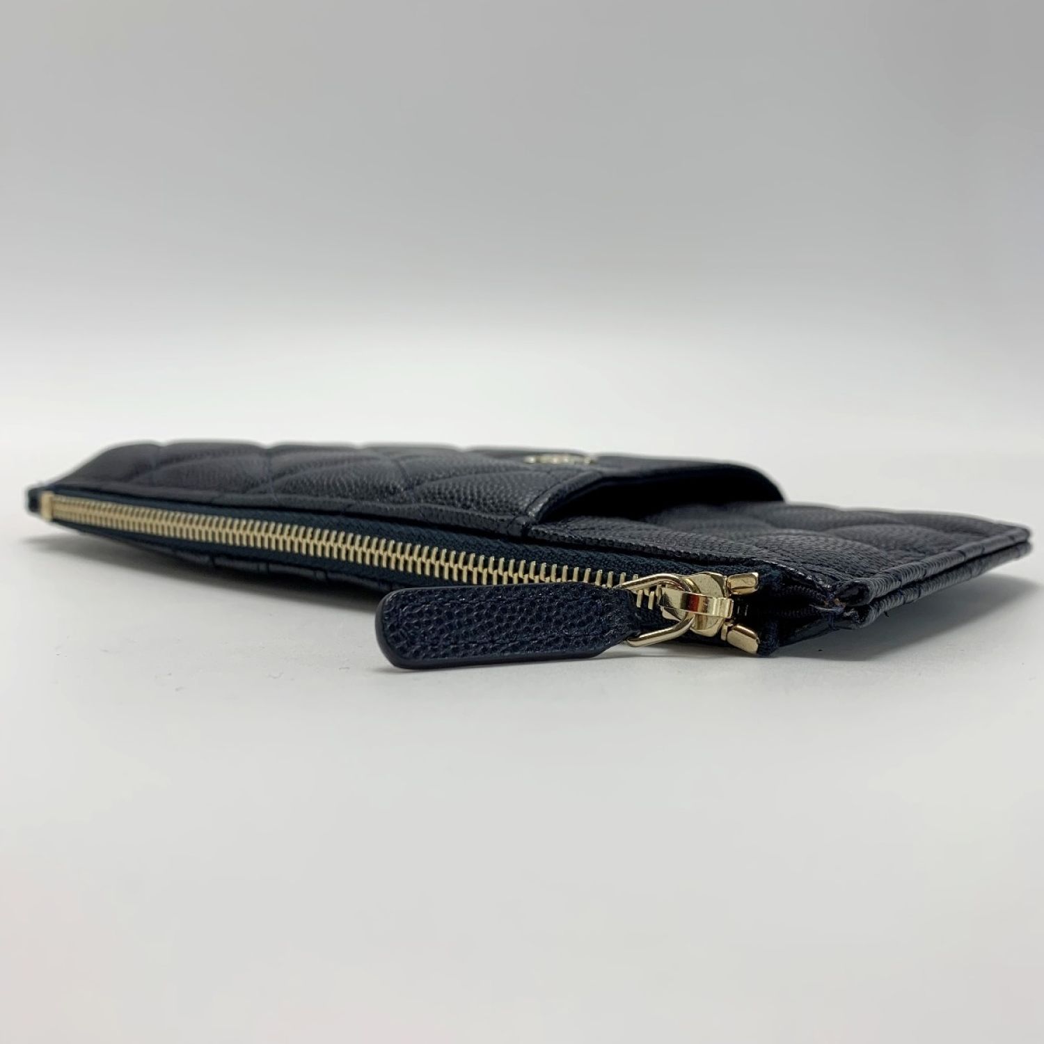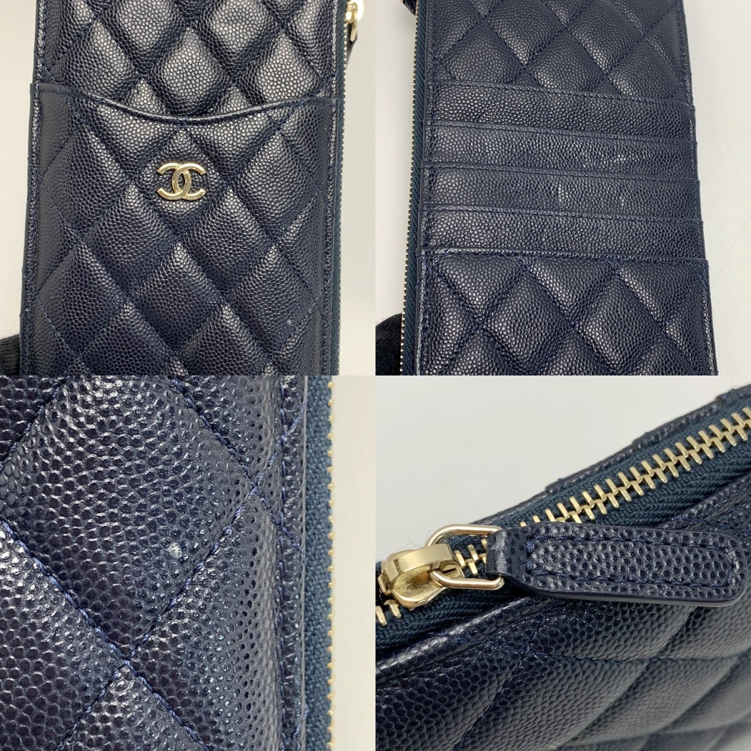 CHANEL シャネル カードウオレット クラシックポーチ キャビアスキン ネイビー レディース