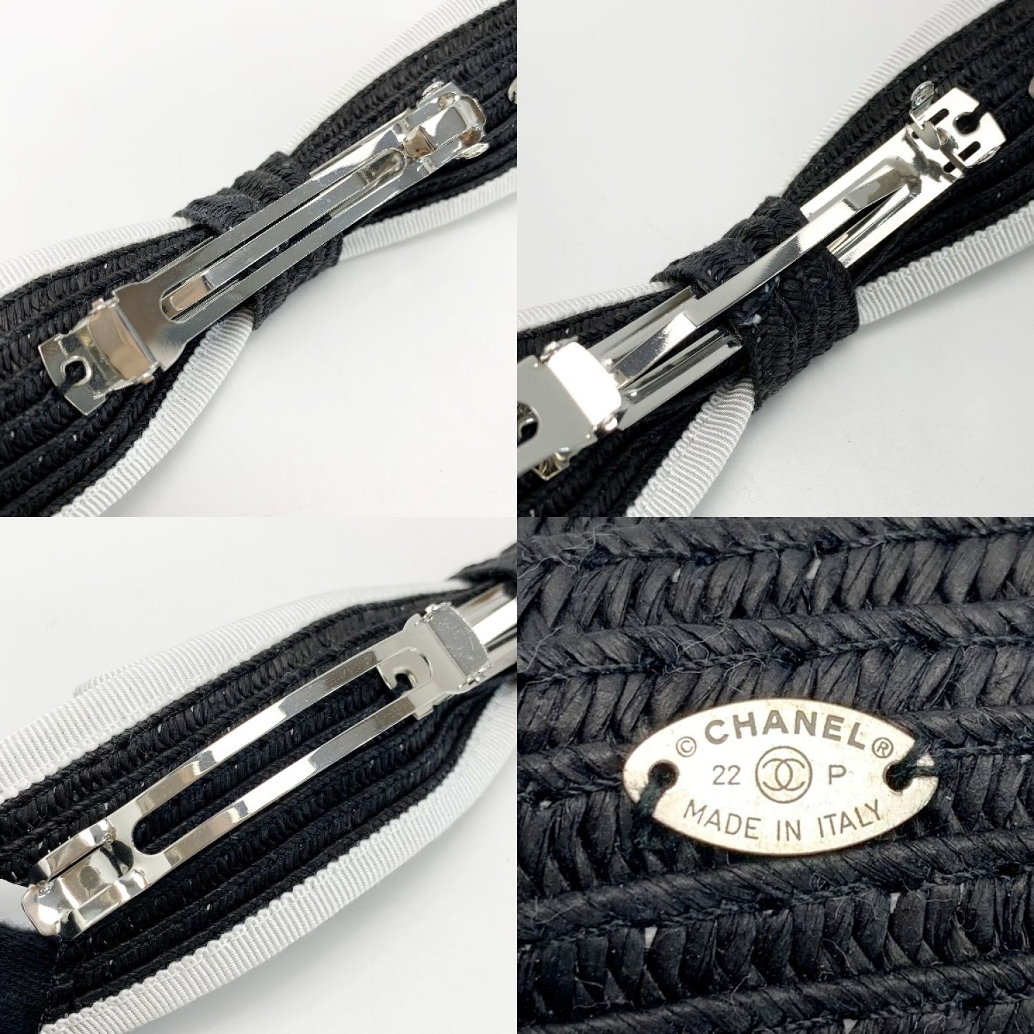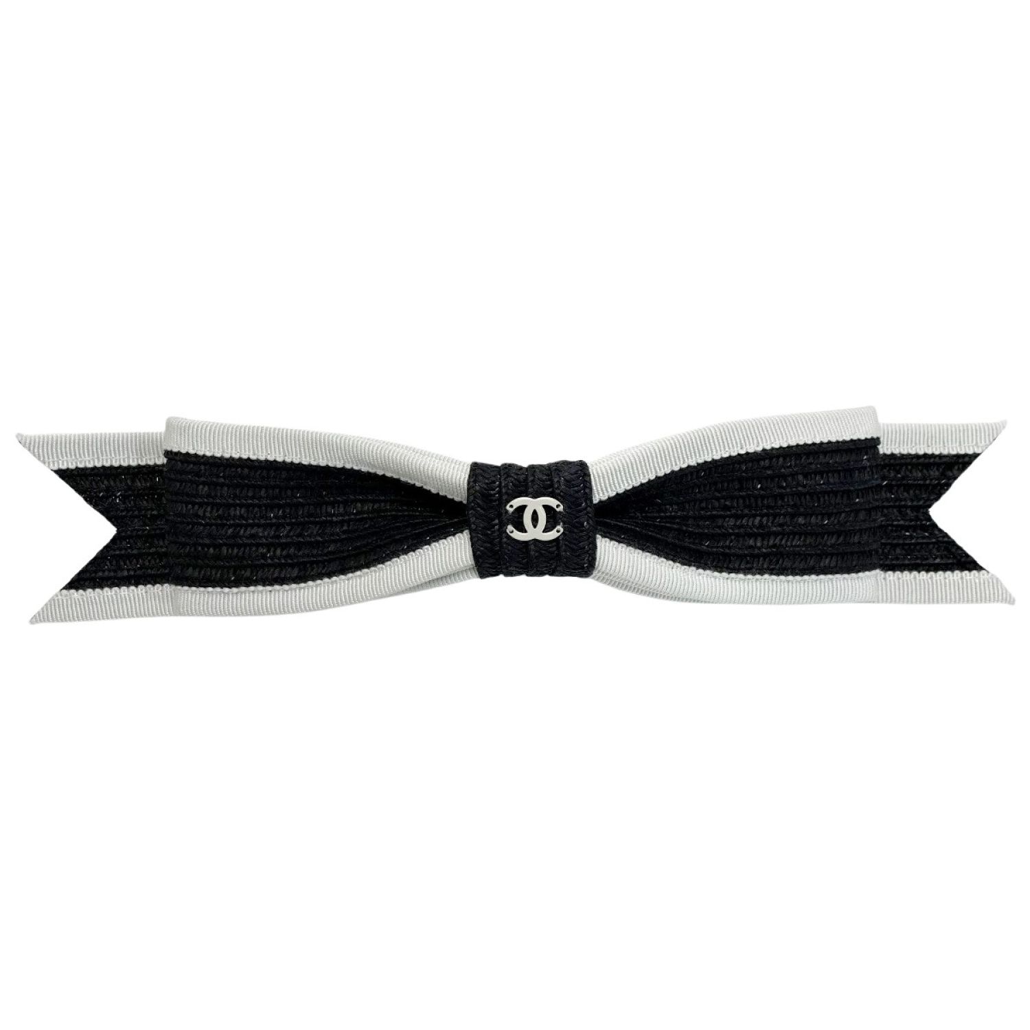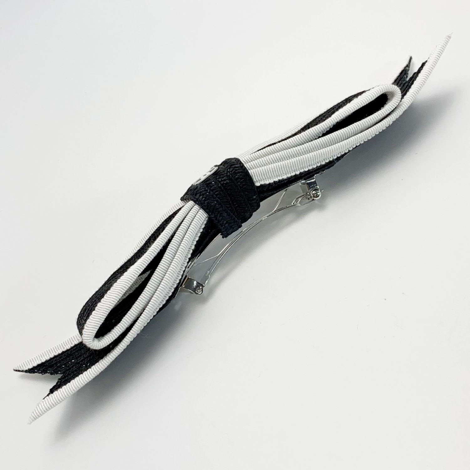 CHANEL シャネル リボン ブラック×ホワイト ヘアアクセサリー バレッタ レディース