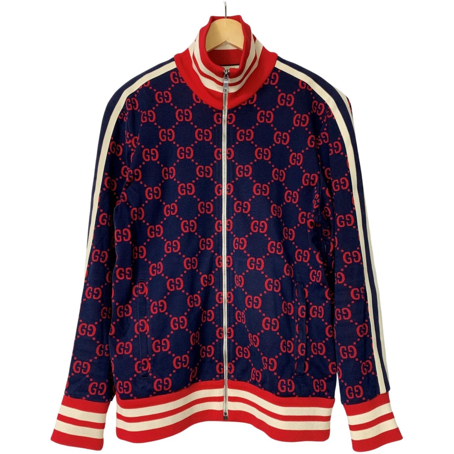 【商品名】中古 GUCCI グッチ GGジャカード ジャージ ネイビー×レッド ジャケット アウター Cランク