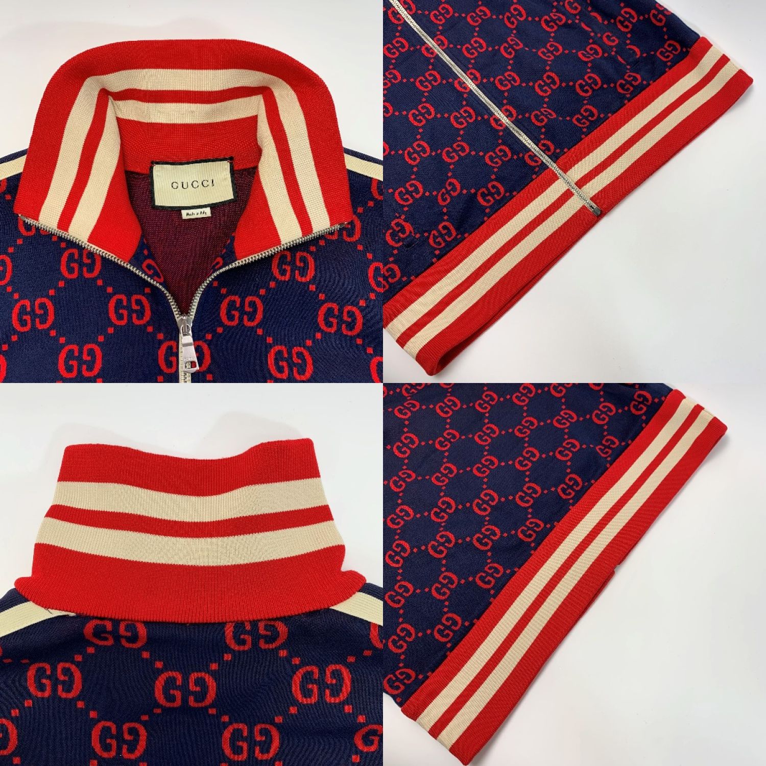 GUCCI グッチ GGジャカード ジャージ ネイビー×レッド ジャケット アウター