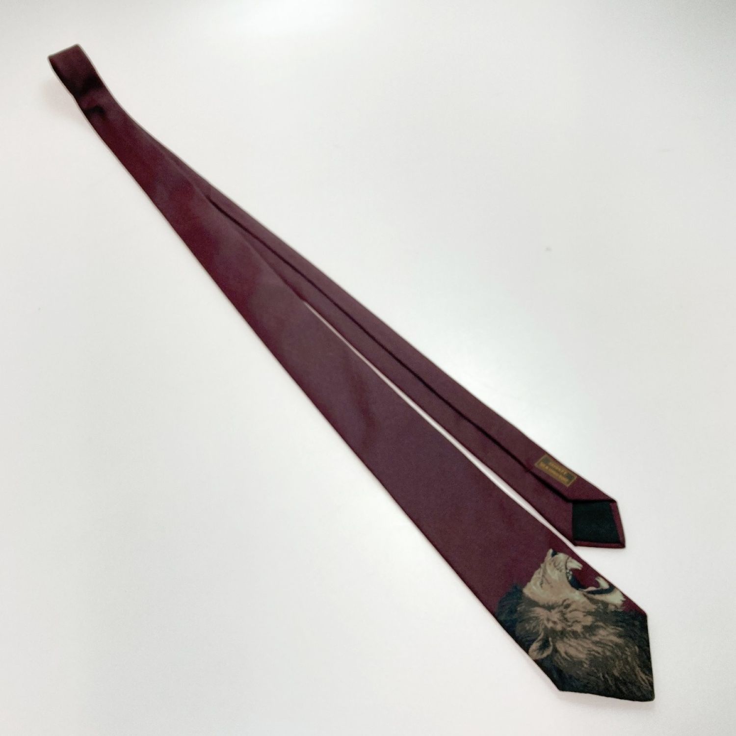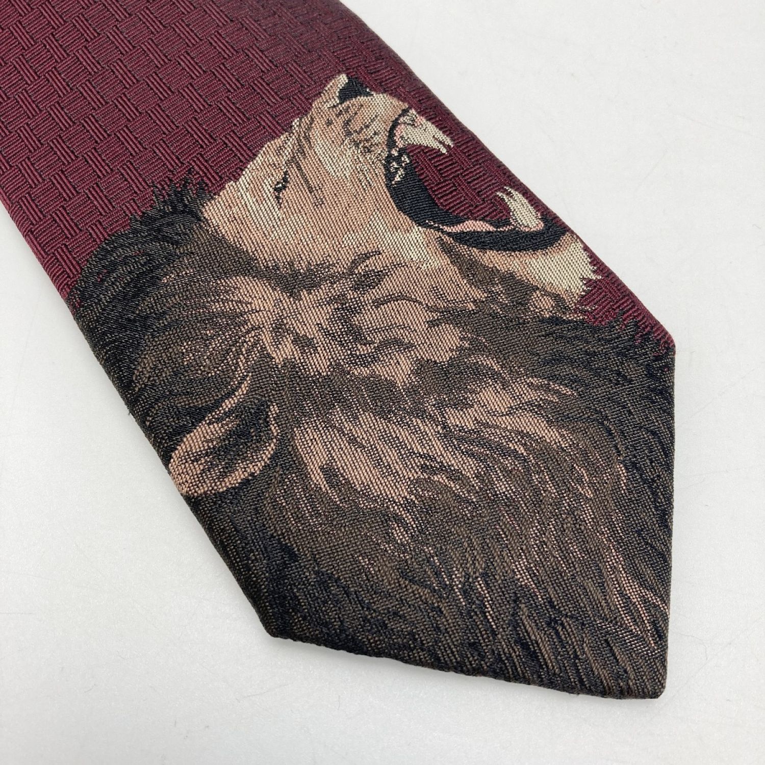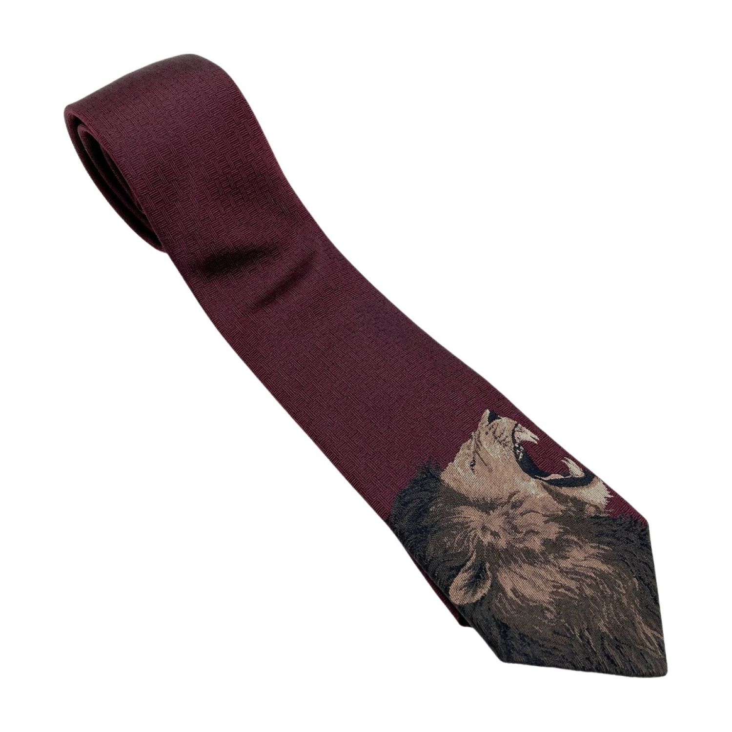 【商品名】中古 HERMES エルメス ROAAAAAR! ネクタイ エンジ ライオン シルク100% Bランク