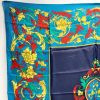 【商品名】中古 CELINE セリーヌ シルクスカーフ 花柄 ターコイズブルー シルク100% Bランク