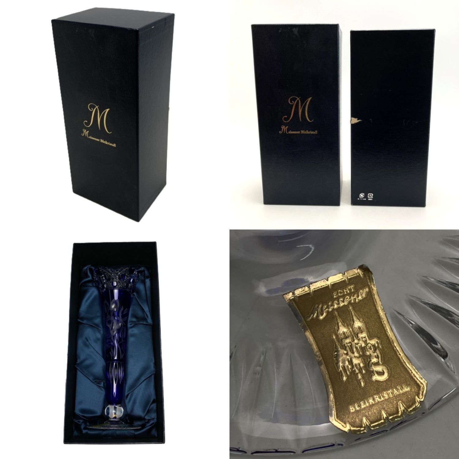 【商品名】中古 Meissen マイセン 一輪挿し マイセンクリスタル 23cm ブルー フラワーベース 花瓶 Bランク