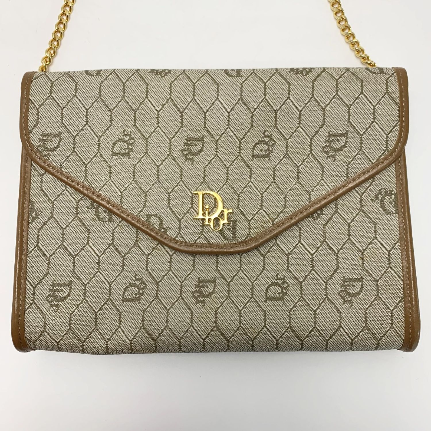 Christian Dior クリスチャンディオール ハニカム・トロッター ベージュ チェーンショルダーバッグ ゴールド金具