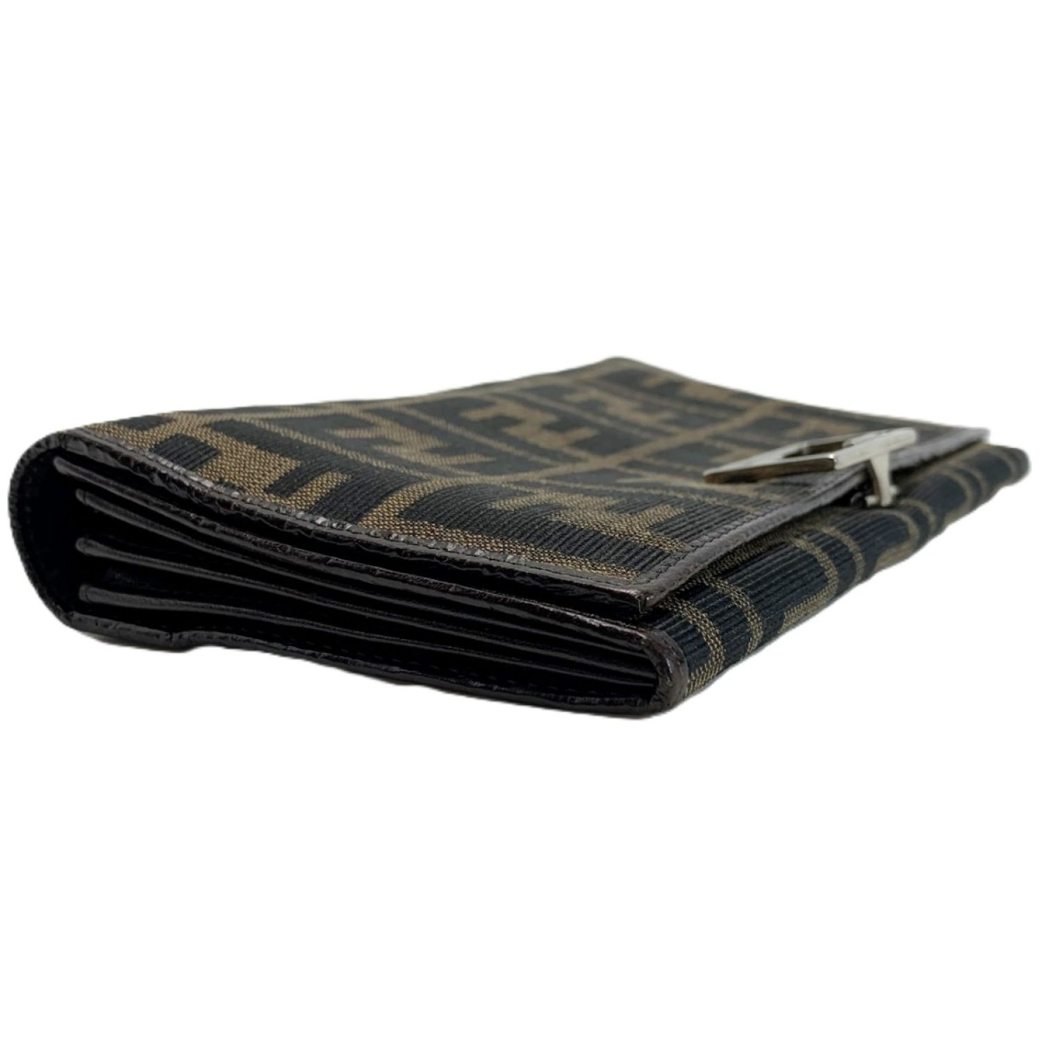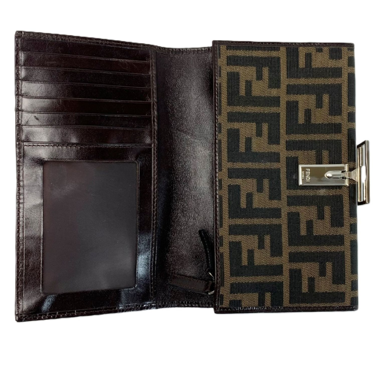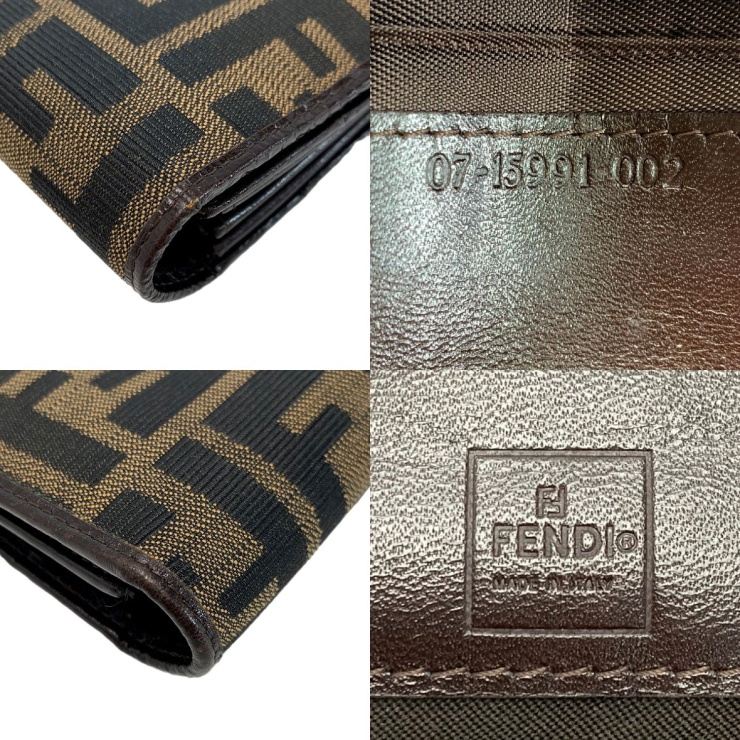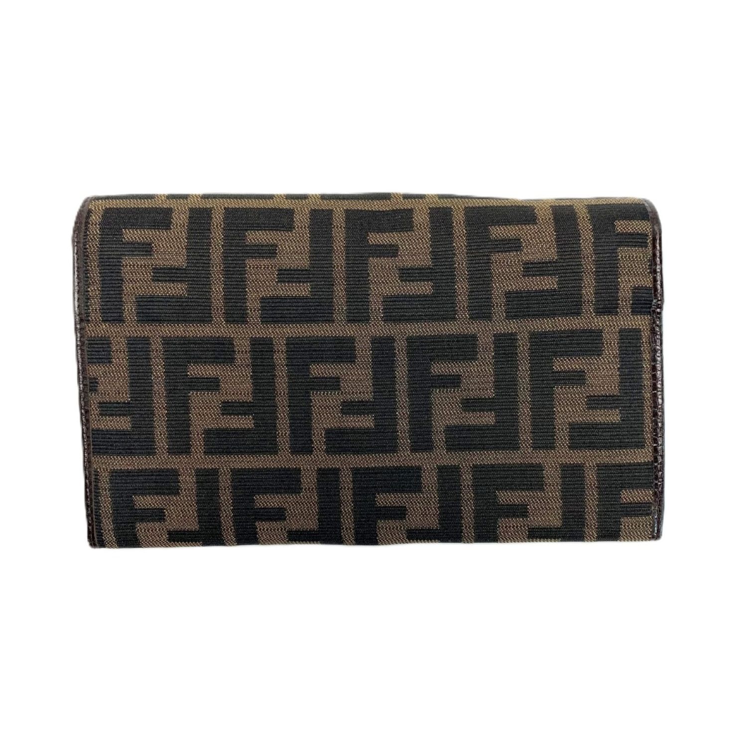 FENDI フェンディ 2つ折り長財布 ズッカ 07-15991 ブラウン キャンバス×レザー ガンチーニ金具
