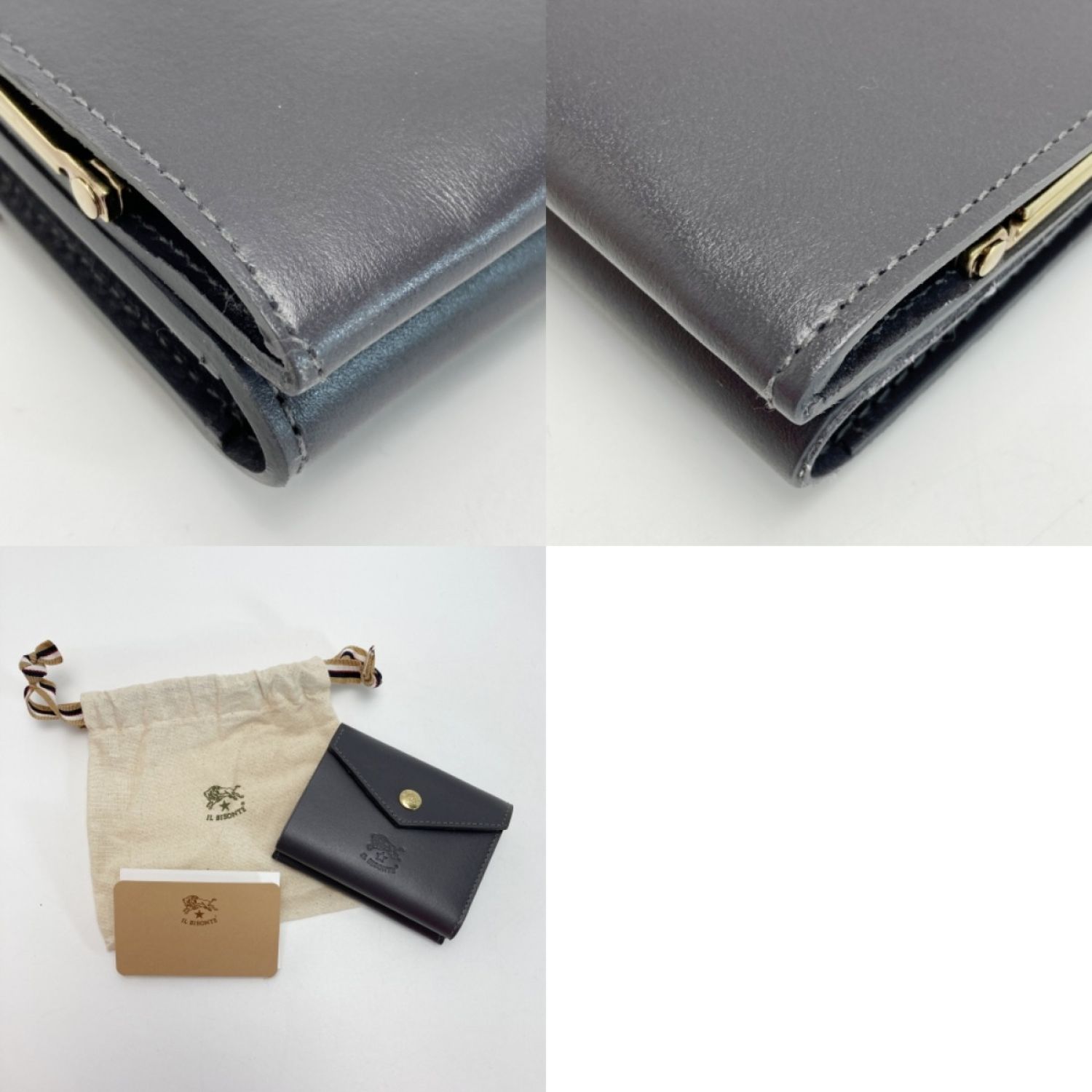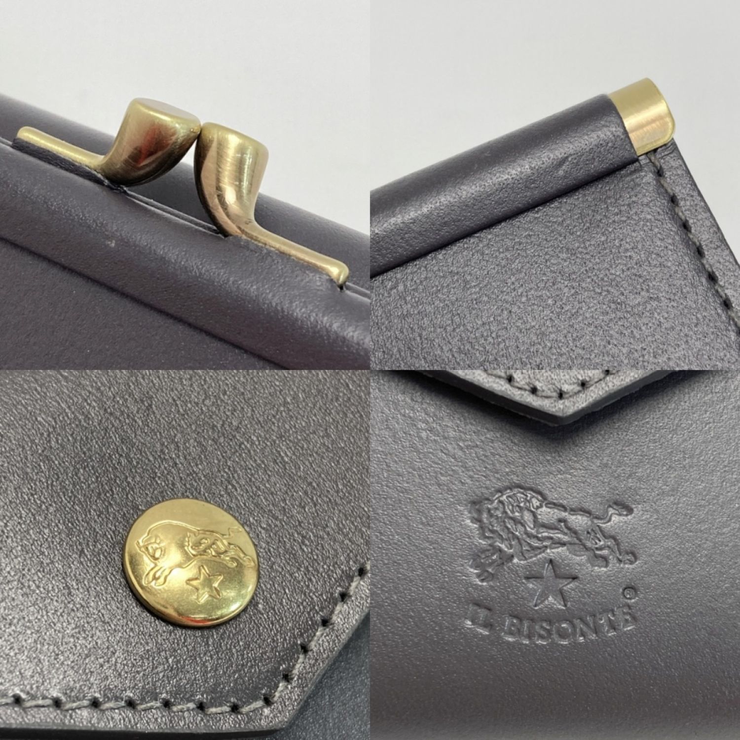 IL BISONTE イルビゾンテ 2つ折りがま口 財布 グレー レザー コンパクトウォレット 布袋有