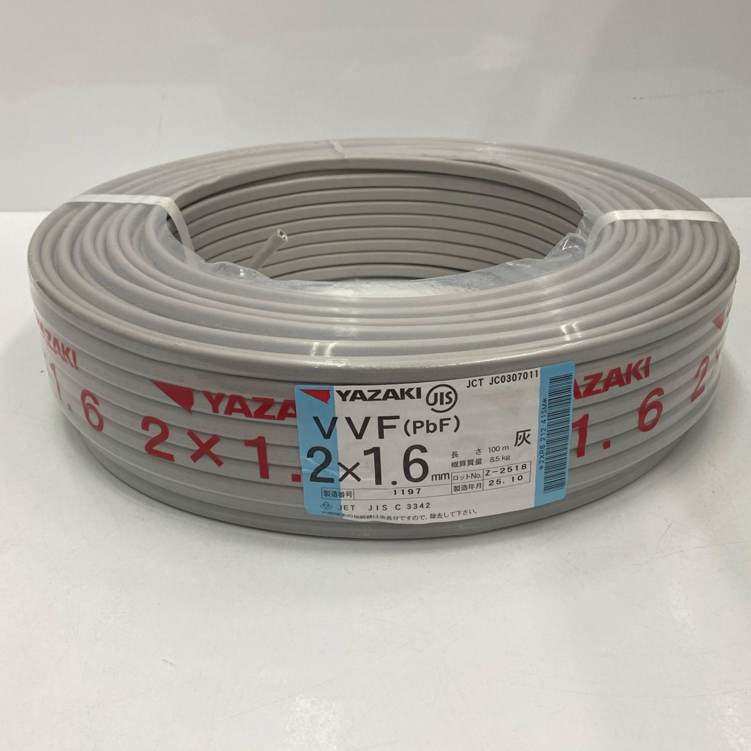 【商品名】中古 YAZAKI 電材 VVFケーブル 2芯×1.6mm 長さ100m 2025年(令和7年)10月製造 未使用品 Sランク