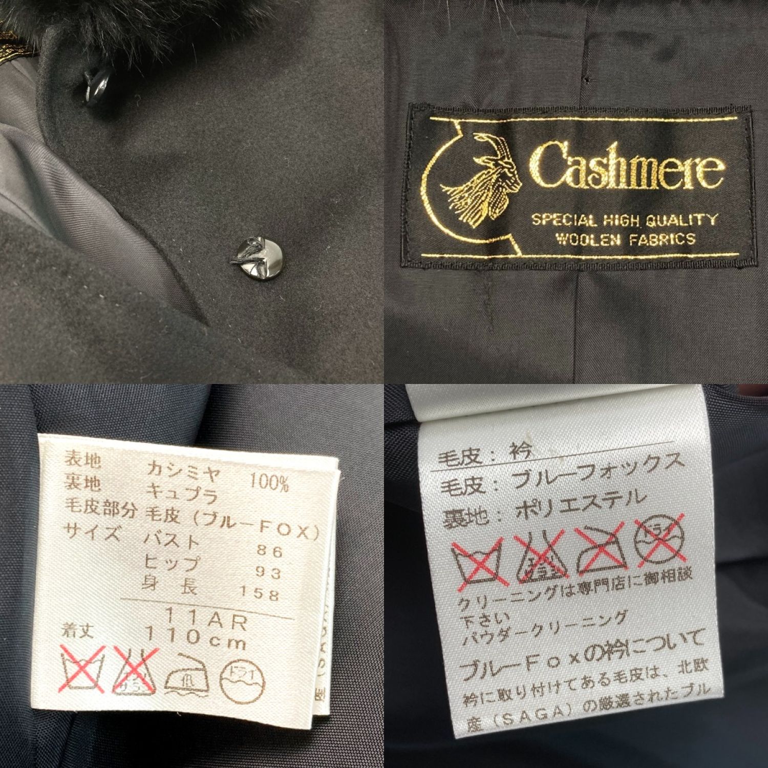 cashmere カシミアコート ファー付き サイズ 11号 ブラック レディース