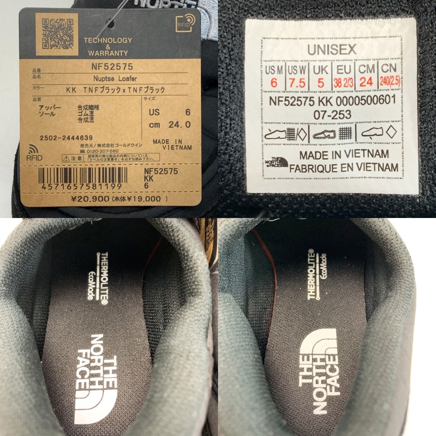 THE NORTH FACE ザノースフェイス レディース ウィンターシューズ ヌプシ ローファー NF52575 ブラック SIZE 24cm ユニセックス