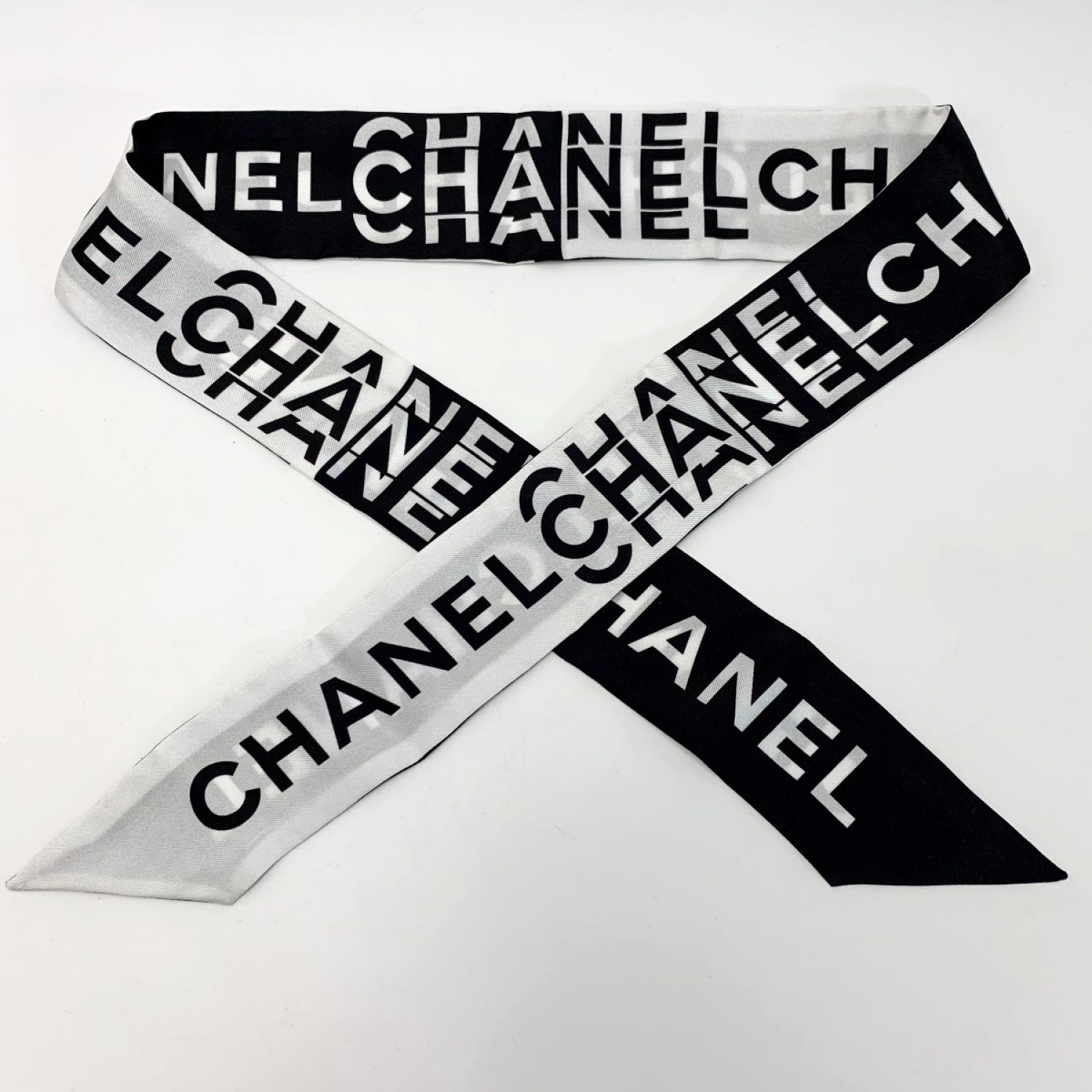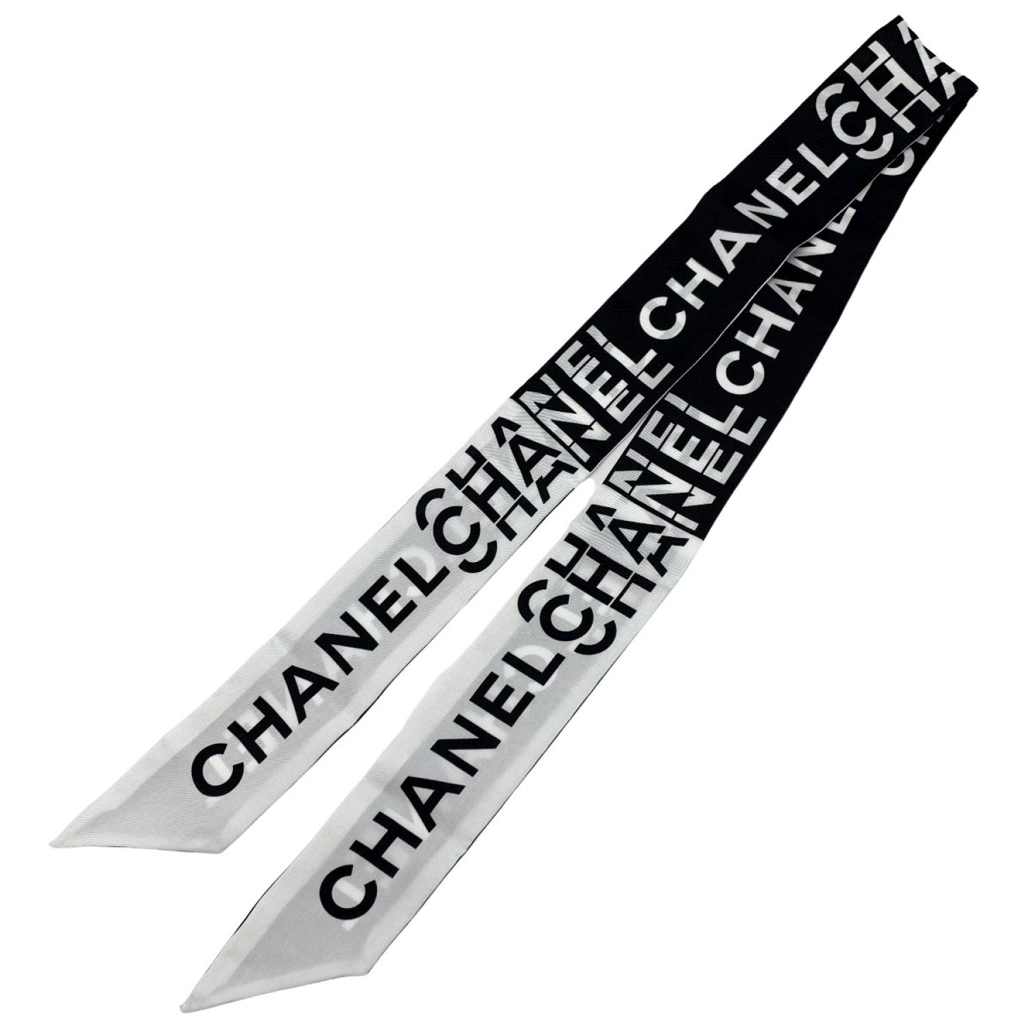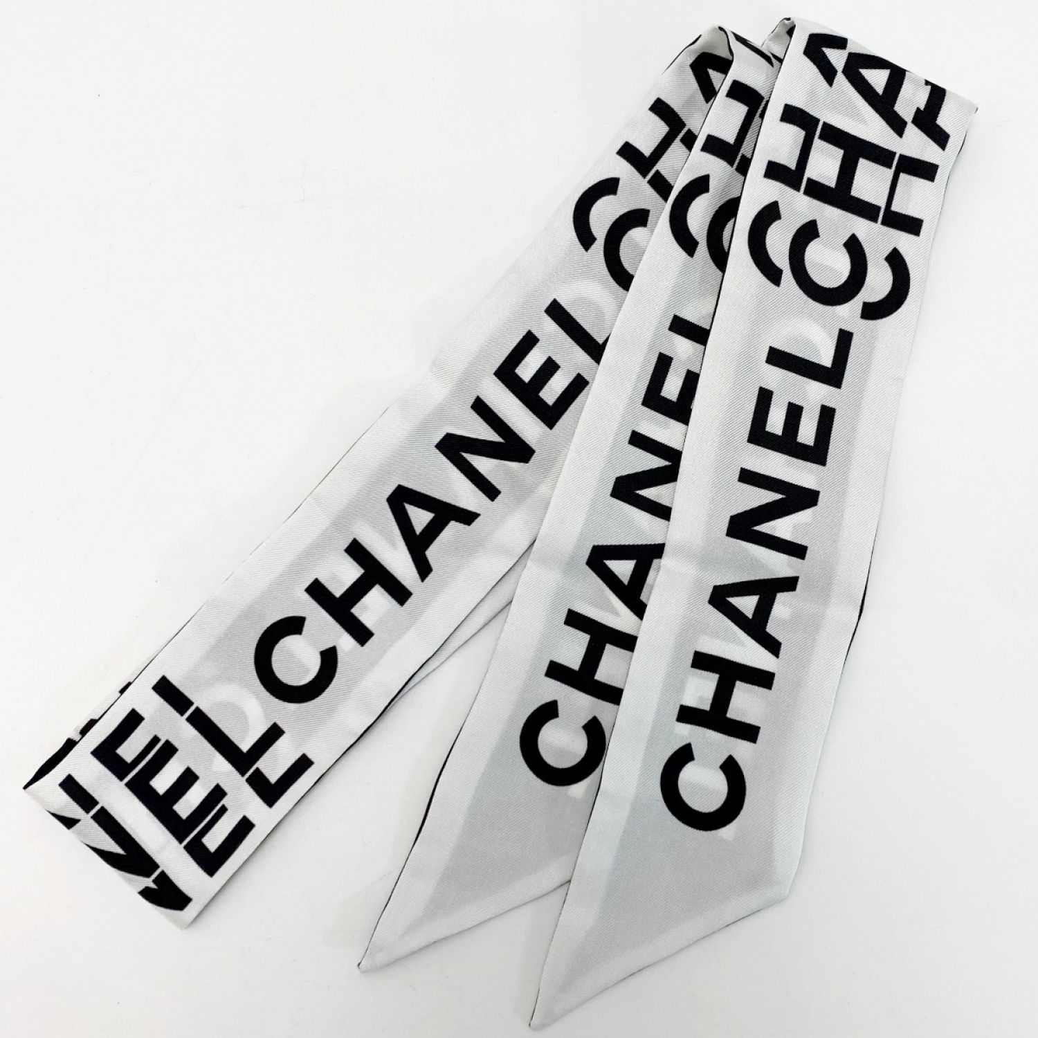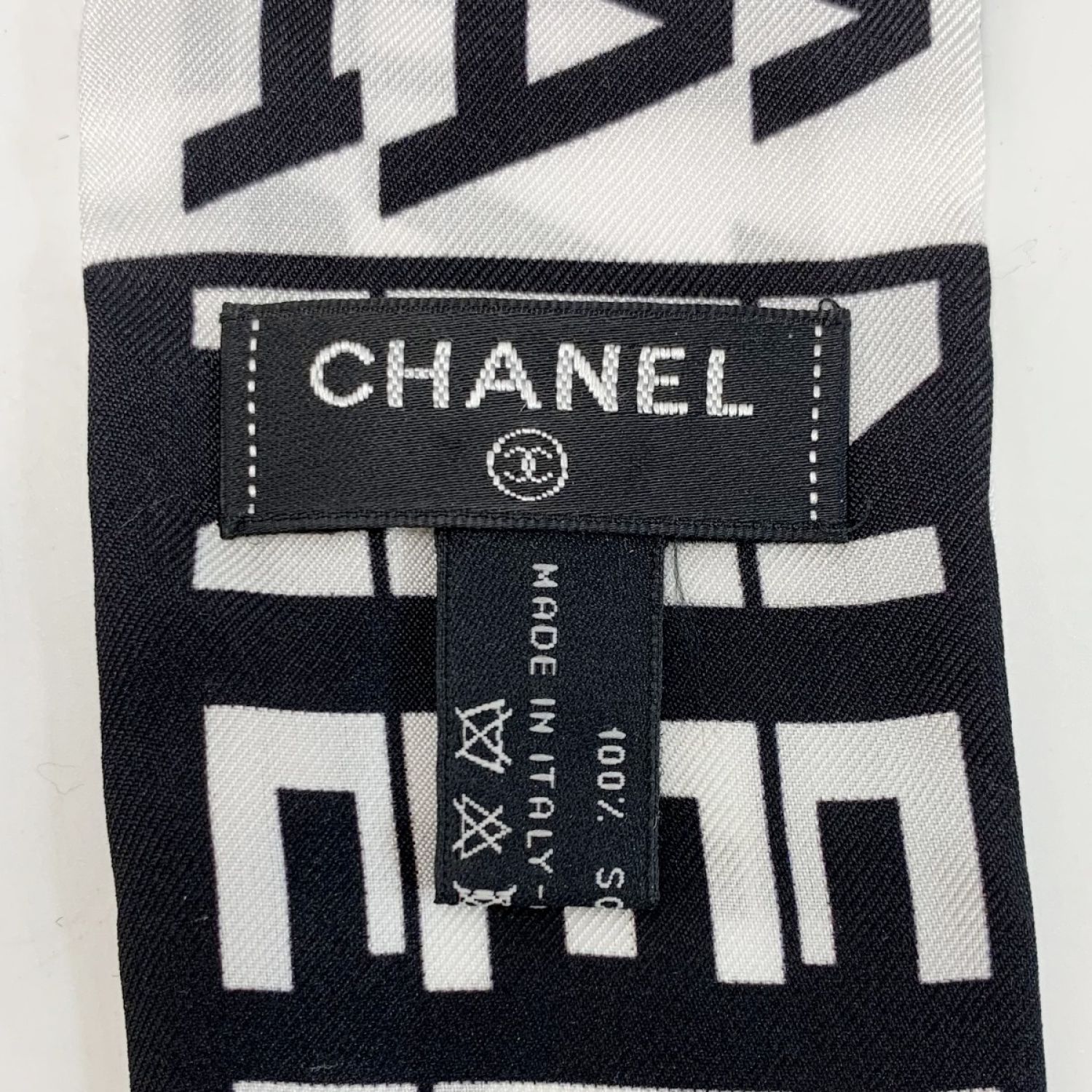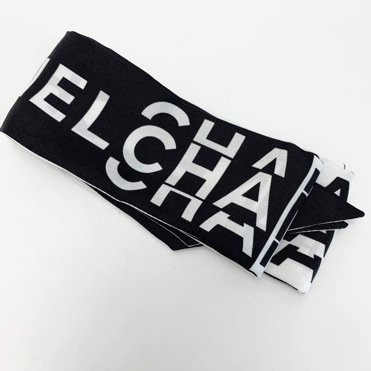 CHANEL シャネル ヘアバンド 細いスカーフ ツイリー ブラック×ホワイト シルク100%