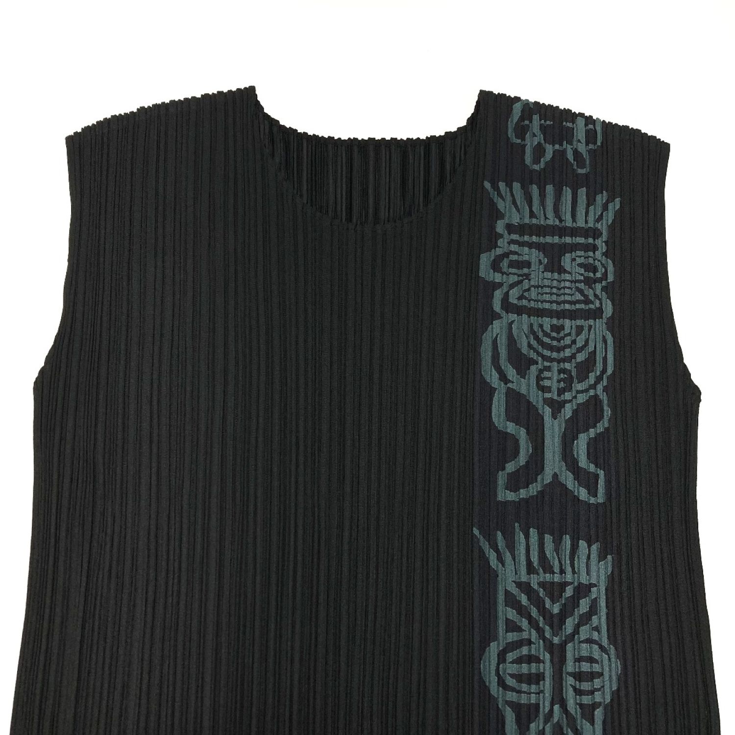 ISSEY MIYAKE イッセイミヤケ PLEATS PLEASE カットソー トーテムポール PP91-JK784 ブラック×グリーン サイズ 3 レディース