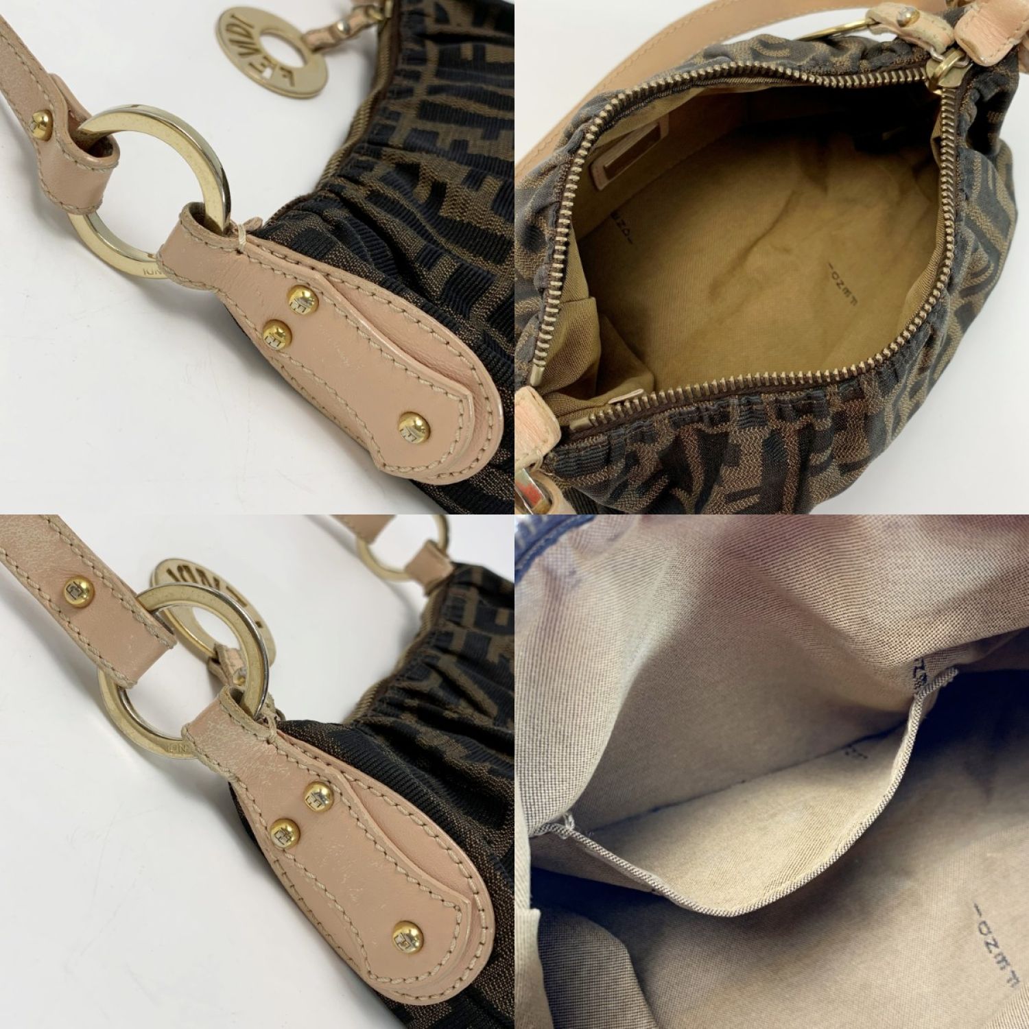 【商品名】中古 FENDI フェンディ アクセサリーポーチ ズッカ ブラウン×ライトピンク キャンバス×レザー Bランク