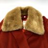 【商品名】中古 CELINE セリーヌ チェスターコート ファー付き レッド SIZE 38 レディース 記名有り Bランク