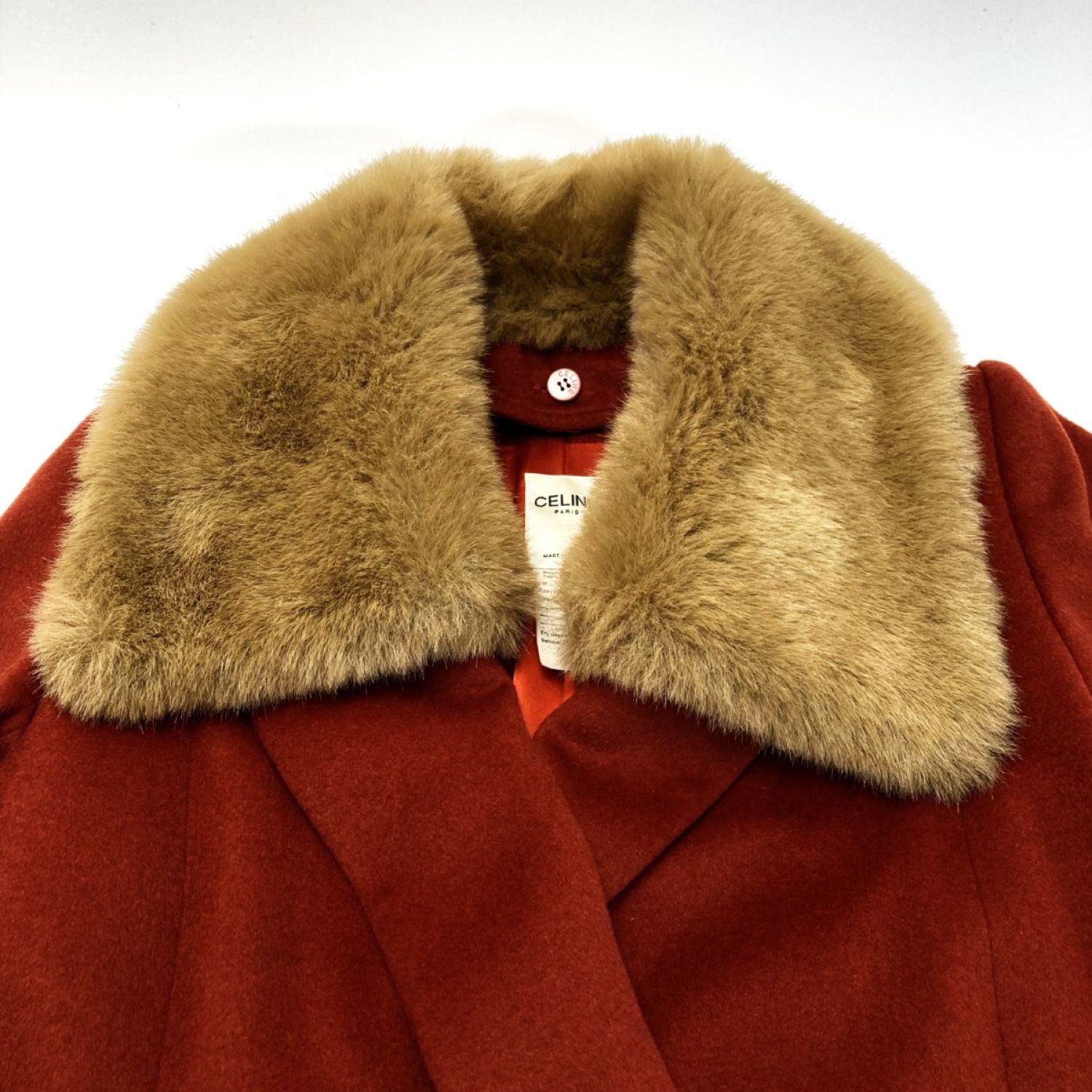 CELINE セリーヌ チェスターコート ファー付き レッド SIZE 38 レディース 記名有り