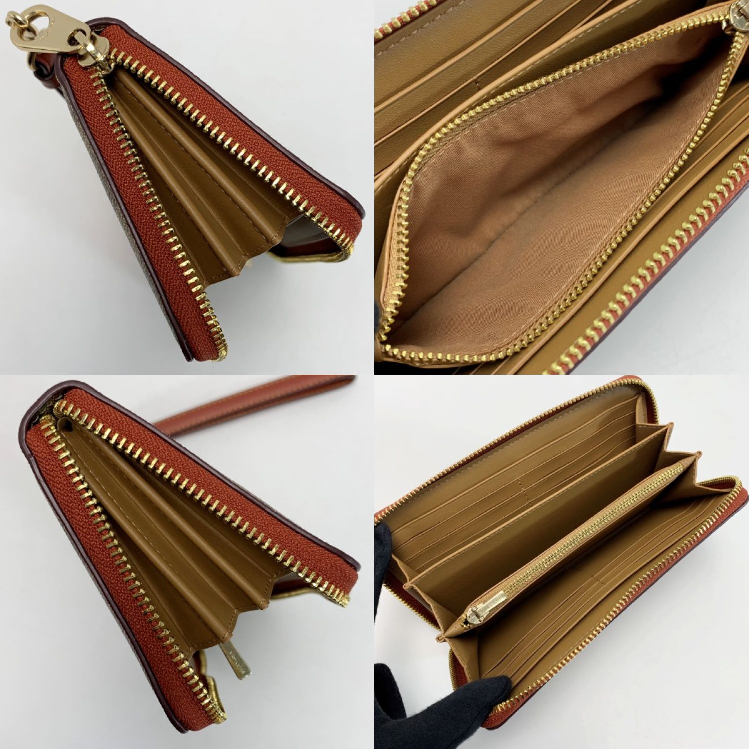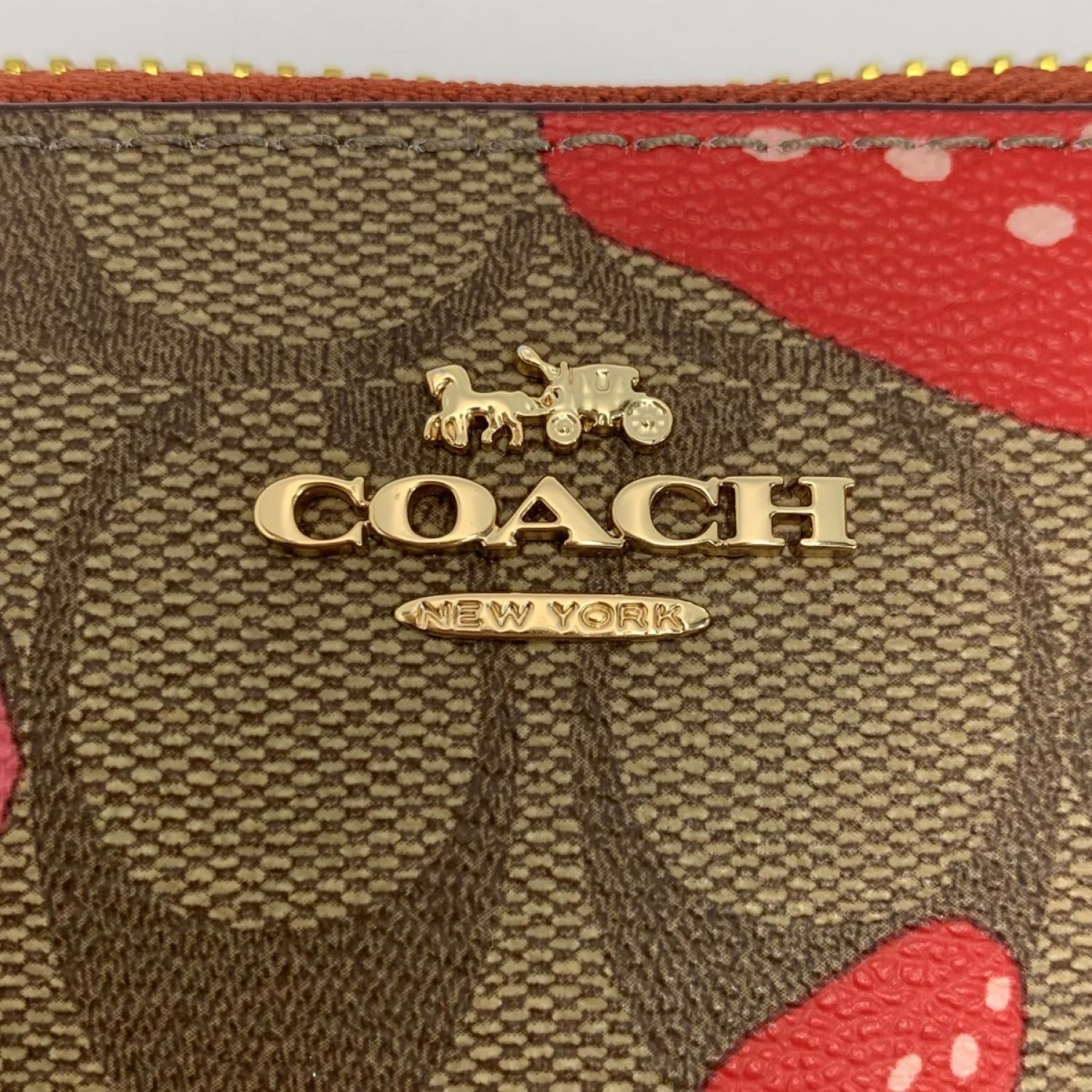 COACH コーチ ワイルド ストロベリー プリント ラウンドファスナー財布 CH523 ブラウン ストラップ付