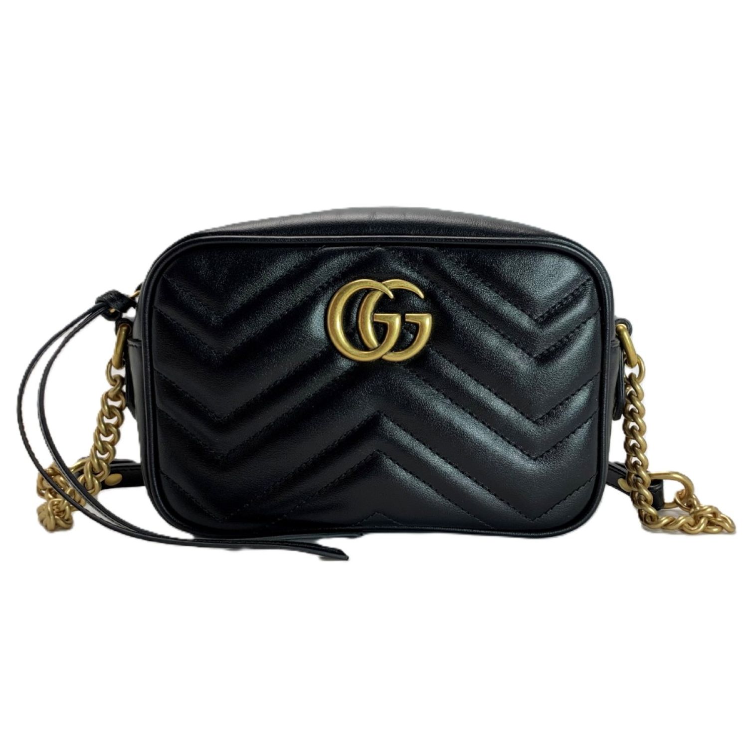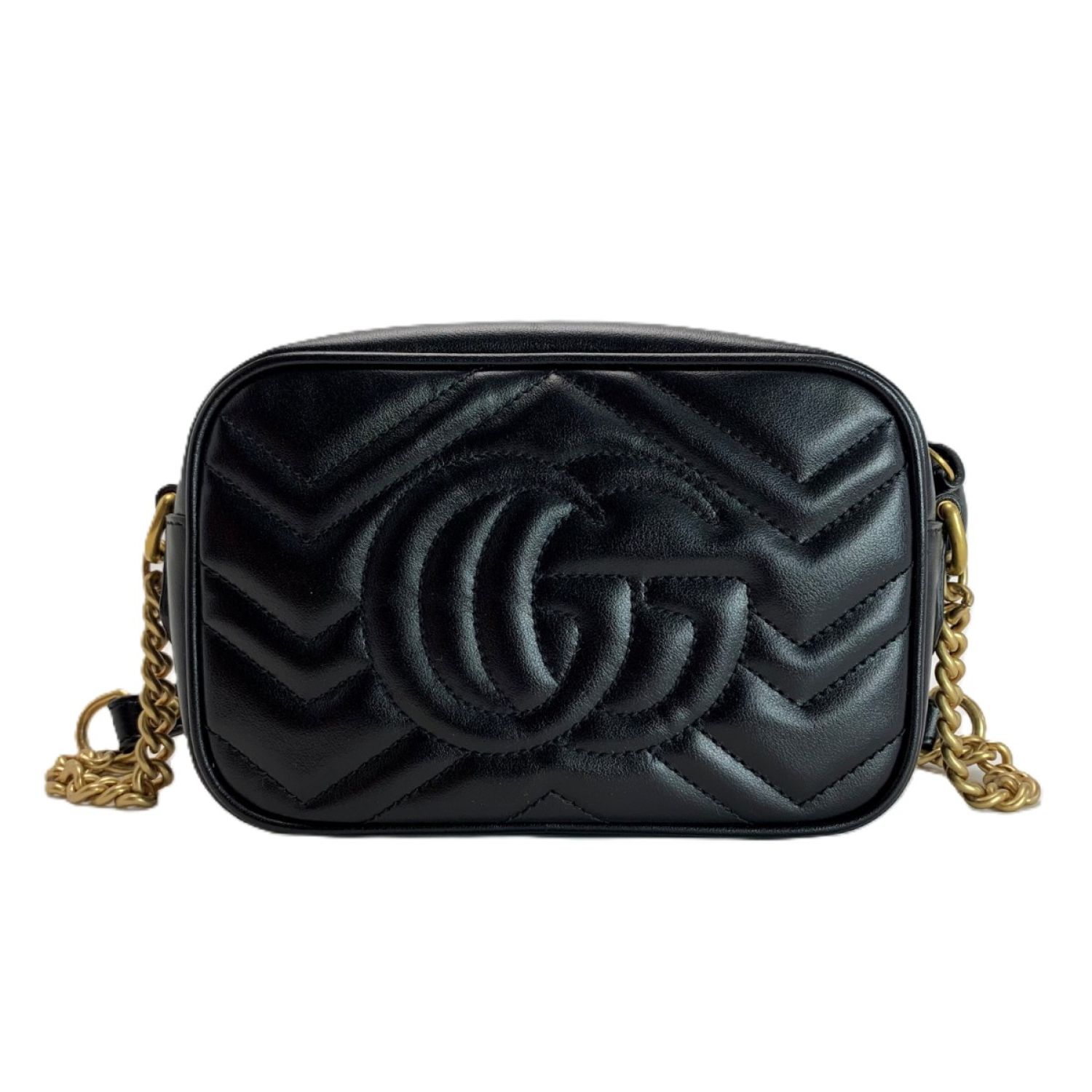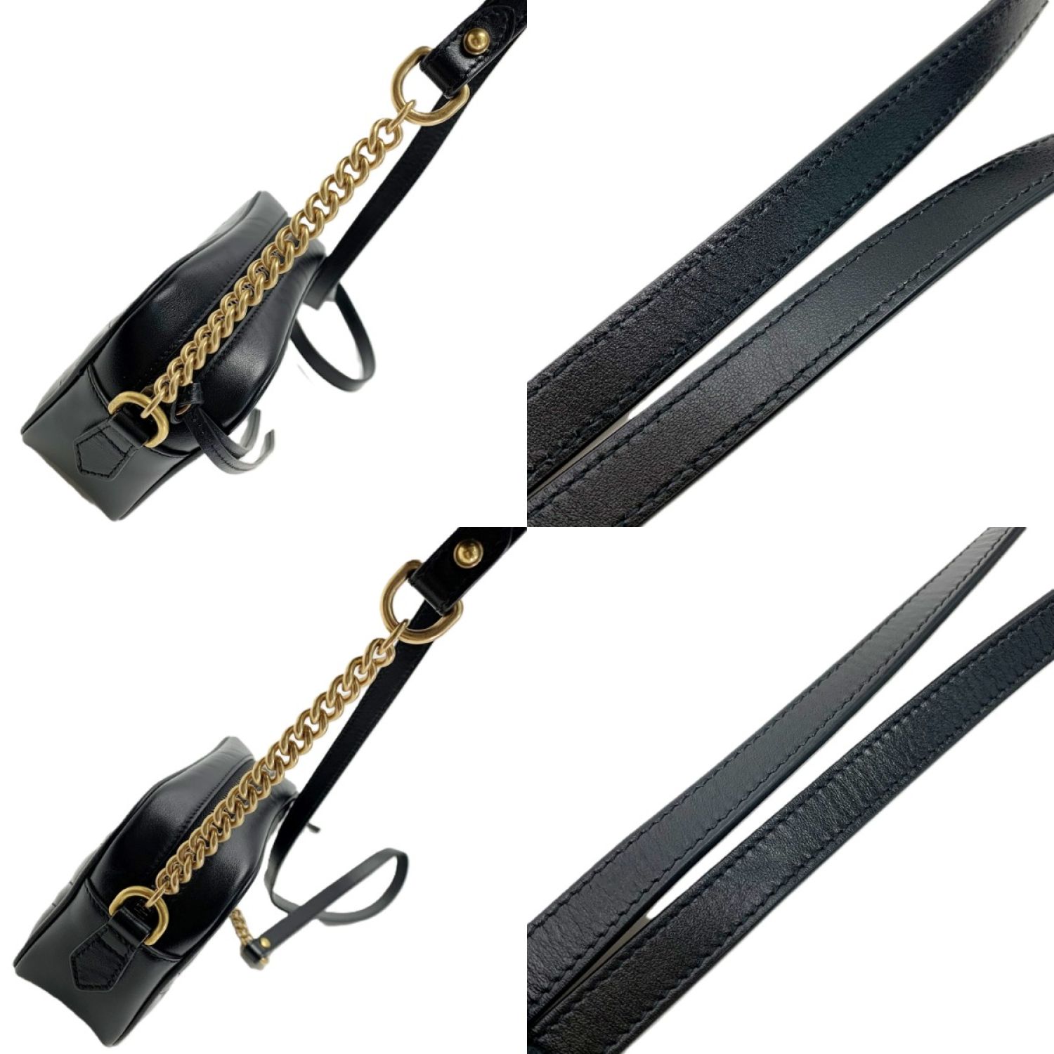 GUCCI グッチ GG マーモント チェーンショルダー バッグ 448065 ブラック レザー レディース