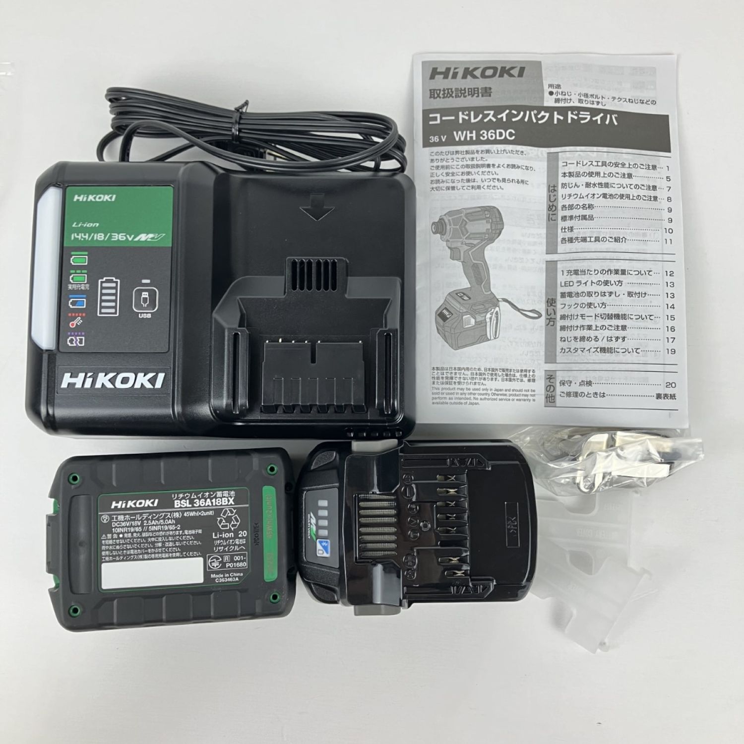 ЗЗ HiKOKI ハイコーキ 36V 充電式インパクトドライバ 充電器 バッテリー×2 ケース付 WH36DC